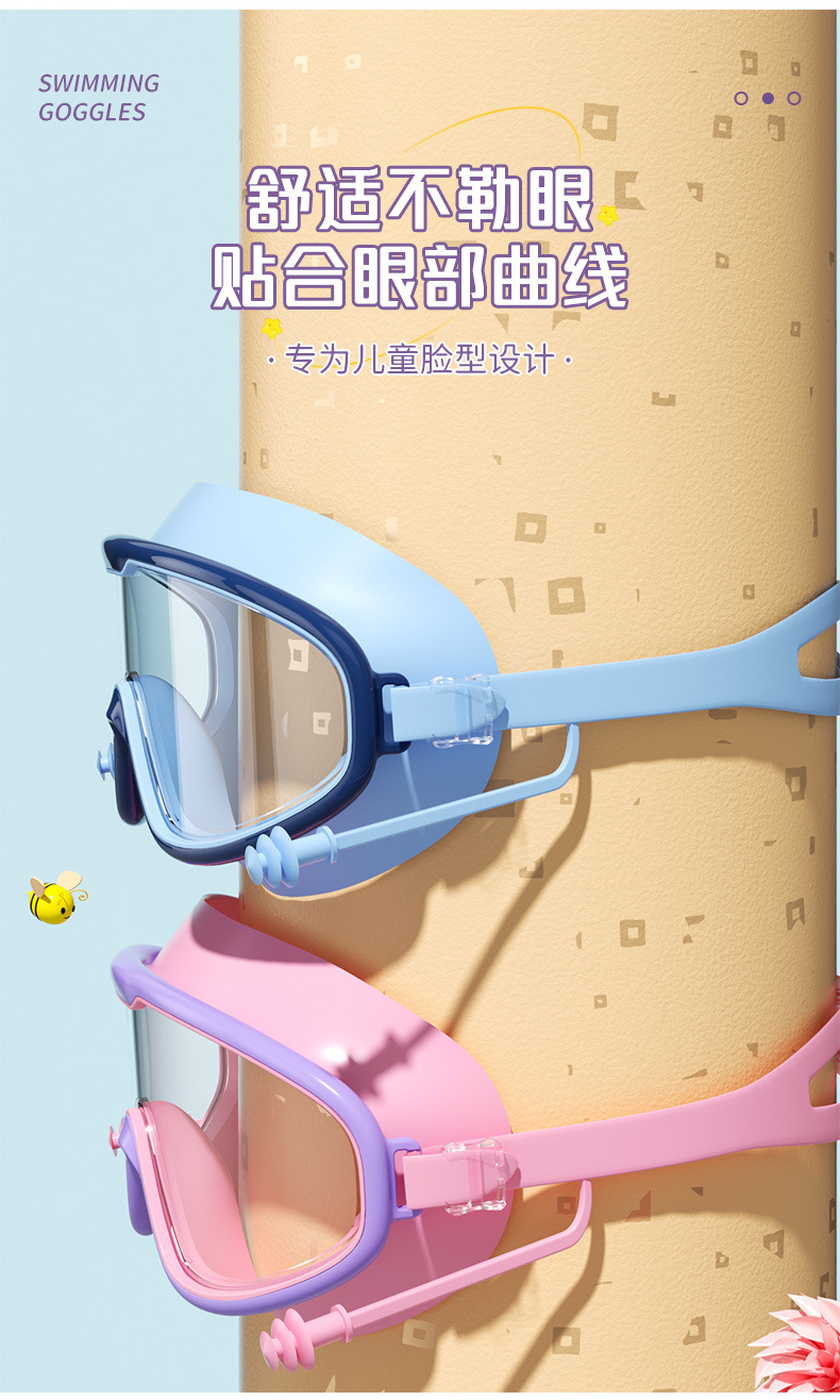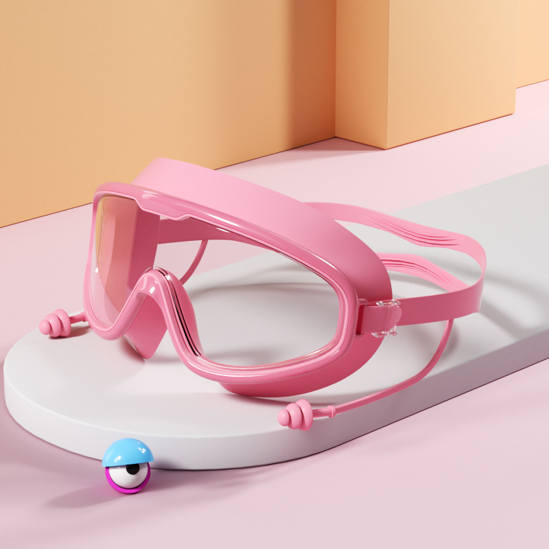 • 핑크 [어린이용 대형 프레임 수영 고글] - 수영 고글 + (고급 수영 고글 상자) + 수영 모자 + 코 클립 귀마개