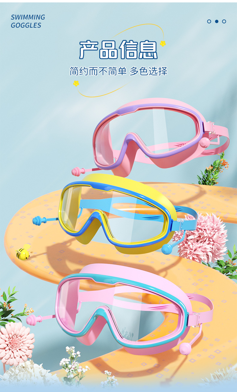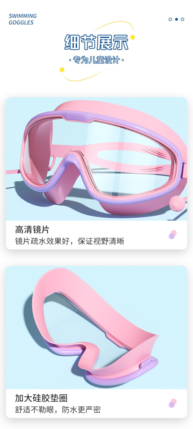 • 퍼플 핑크 [어린이용 대형 프레임 수영 고글] - 수영 고글 + (고급 수영 고글 상자) + 수영 모자 + 코 클립 귀마개