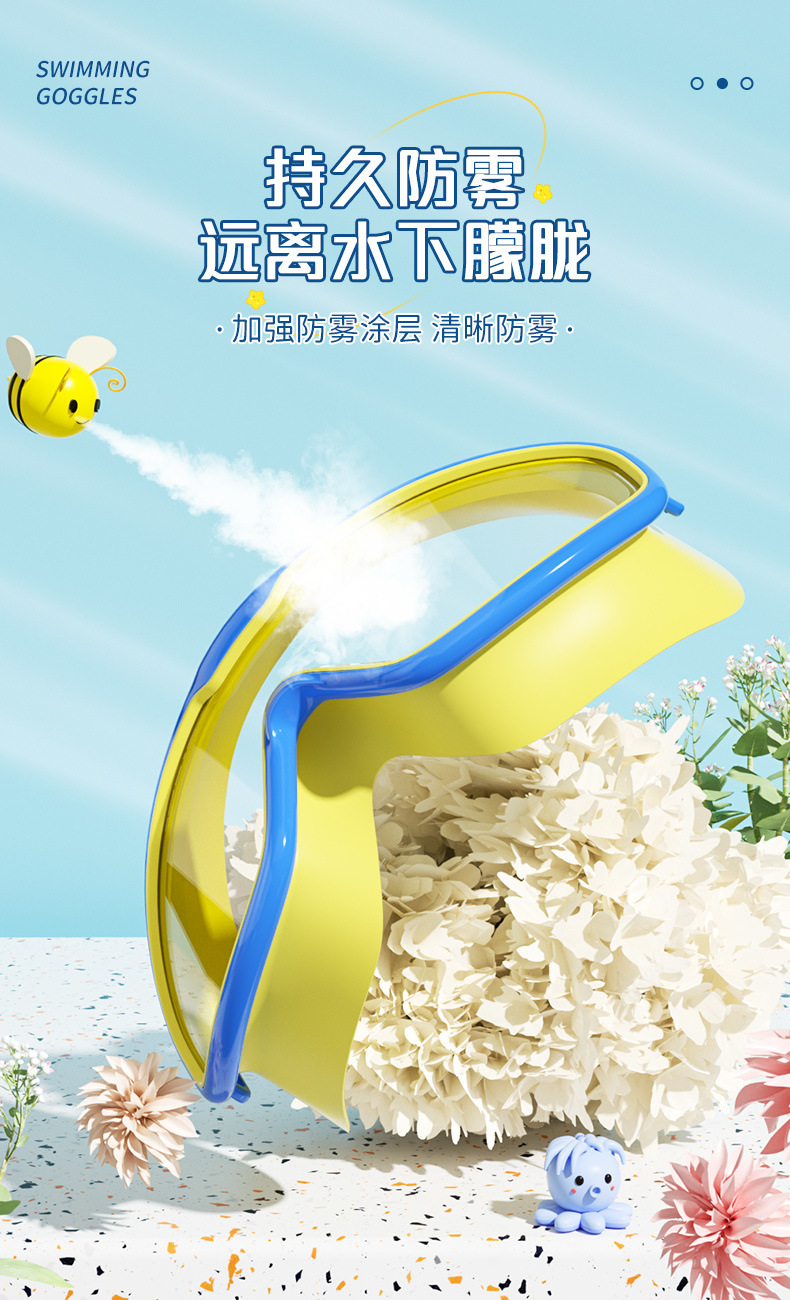 • 파란색과 노란색 [어린이용 대형 프레임 수영 고글] - 수영 고글 + 고급 수영 고글 상자