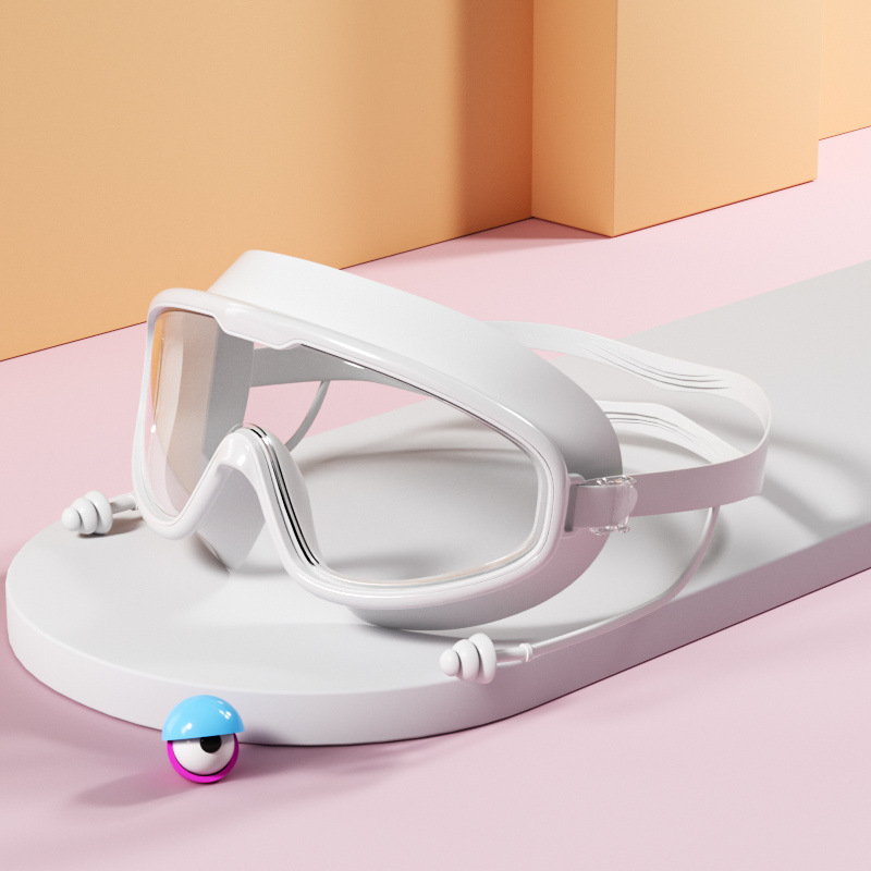 • 화이트 [어린이용 대형 프레임 수영 고글] - 수영 고글 + (고급 수영 고글 상자) + 수영 모자 + 코 클립 귀마개