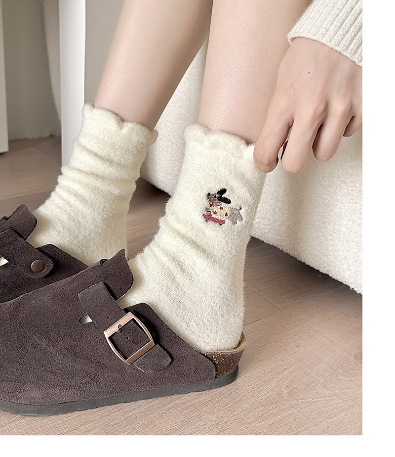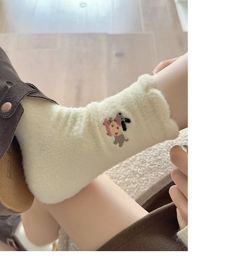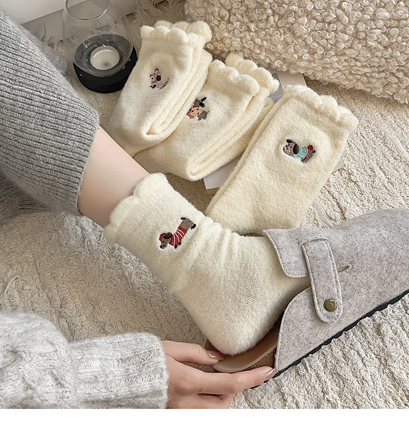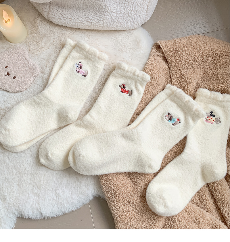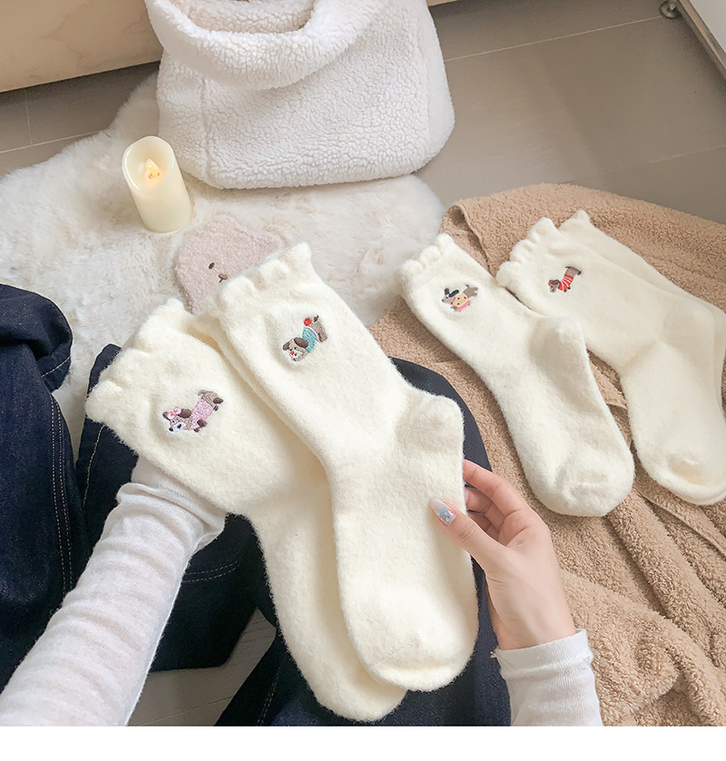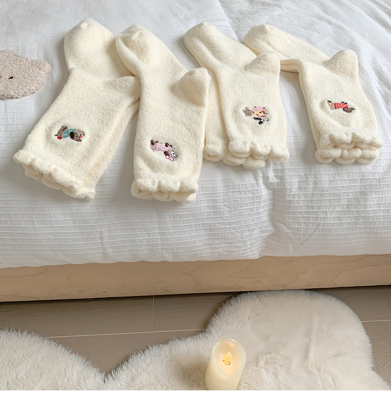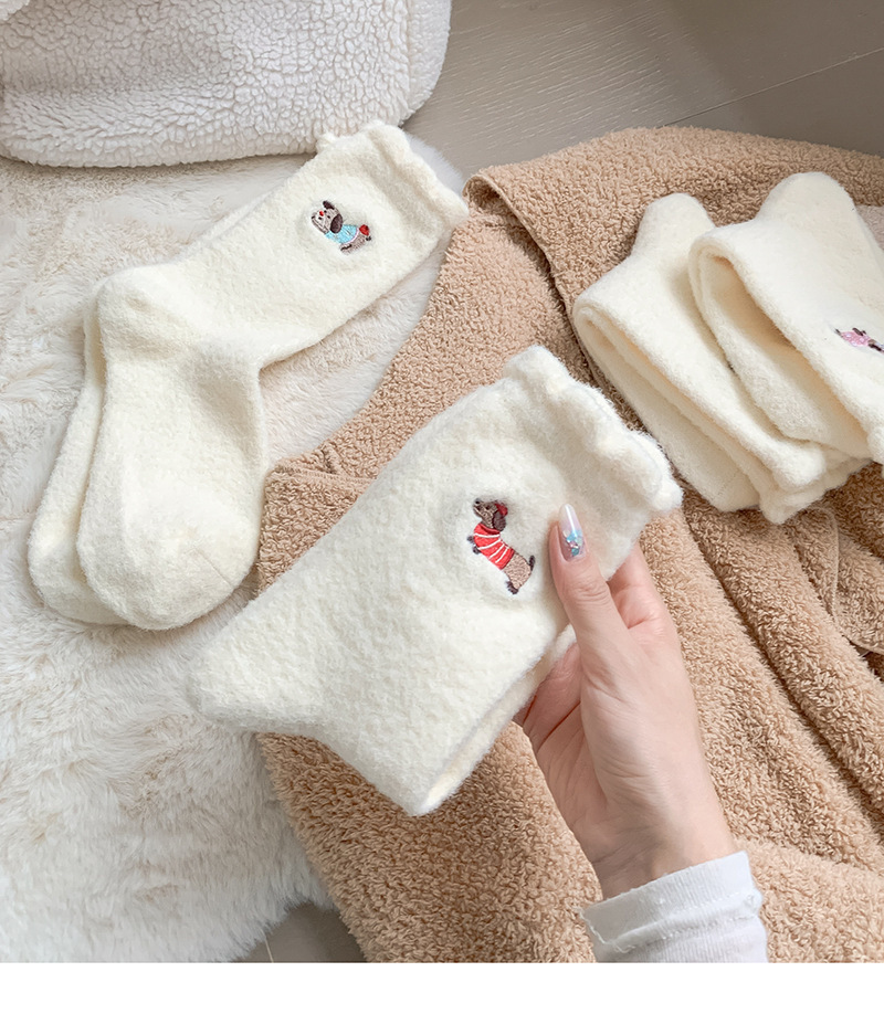 뼈없는 호주 벨벳 흰색 양말 여성 튜브 양말 여성 만화 강아지 가을과 겨울 따뜻한 두꺼운 보풀이없는 눈 양말스토어 가기