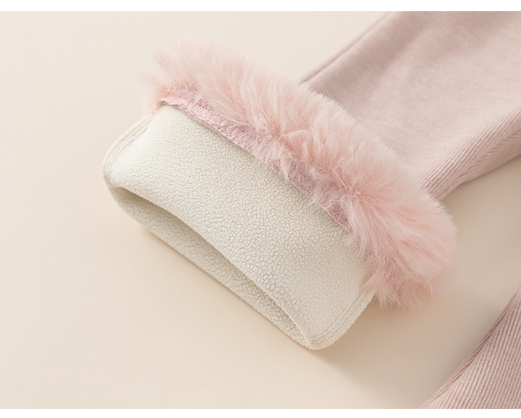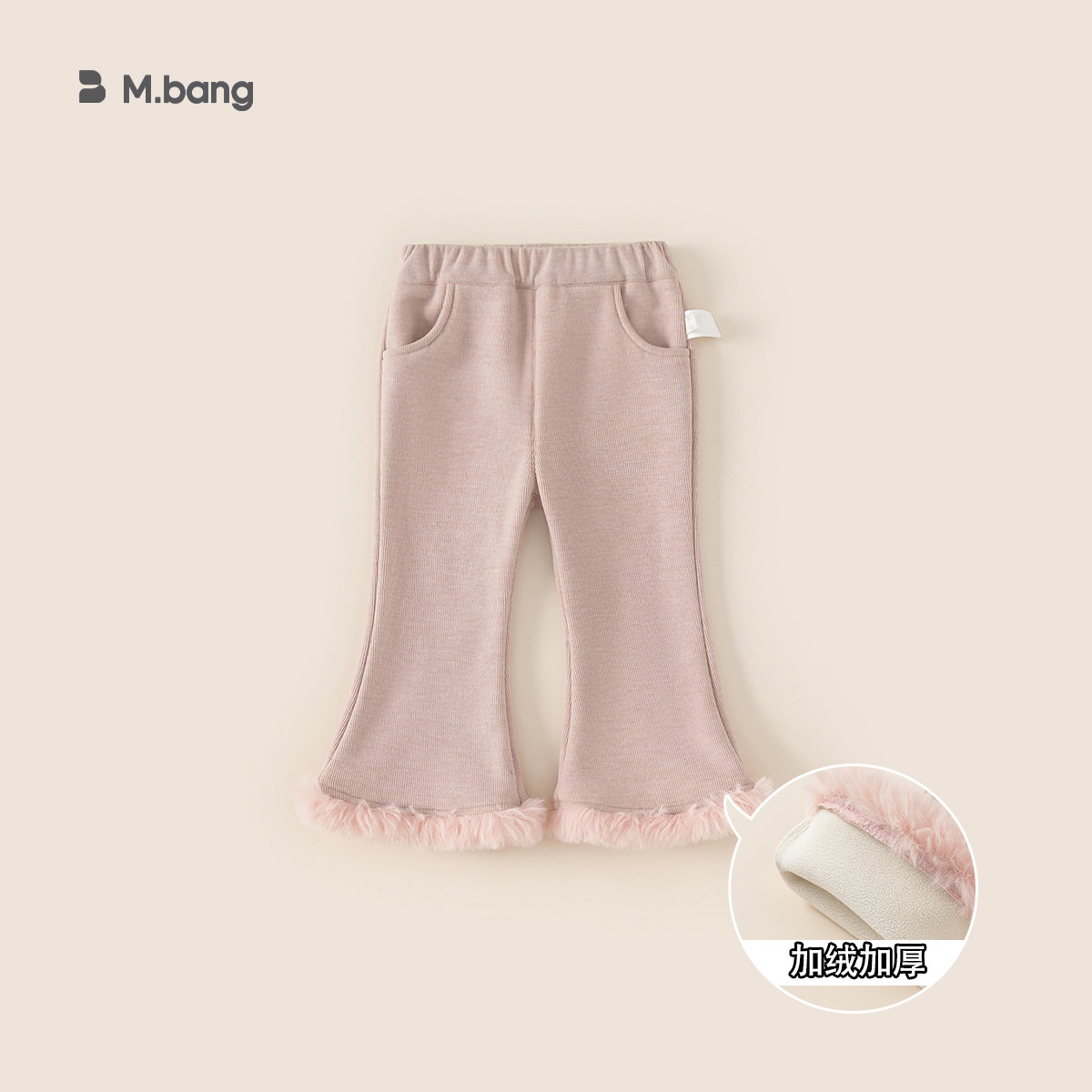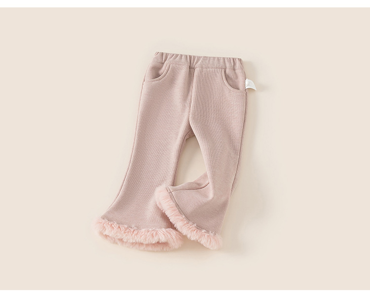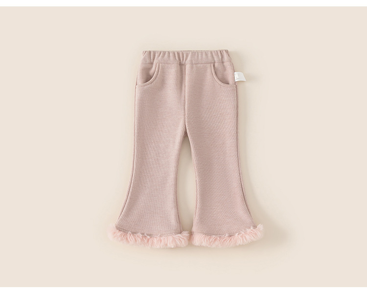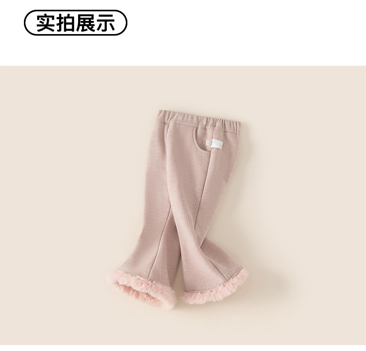 봉, 아동복 2024 년 겨울 새 바지 여자 캐주얼 솔리드 컬러 바지 어린이 기모 랩 뿔 바지 선정