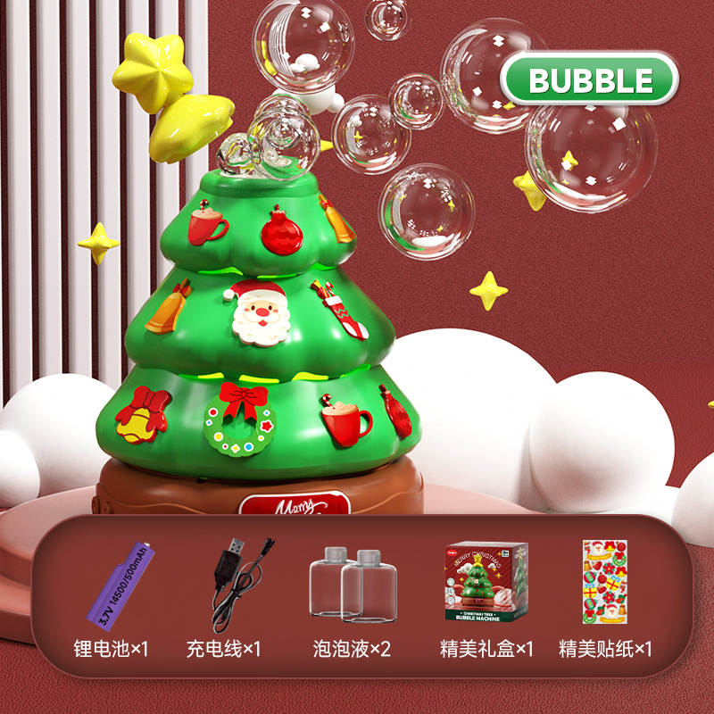 • 크리스마스 트리 버블 머신 [자동 회전/빛과 음악] + 버블 리퀴드 50팩