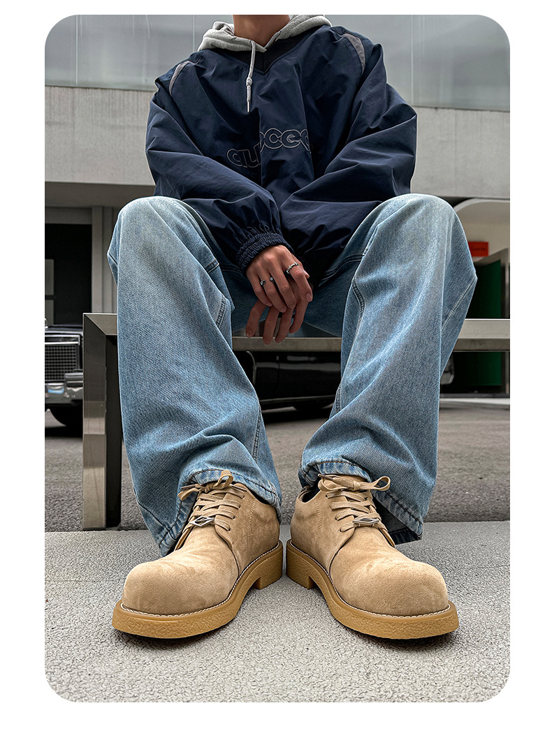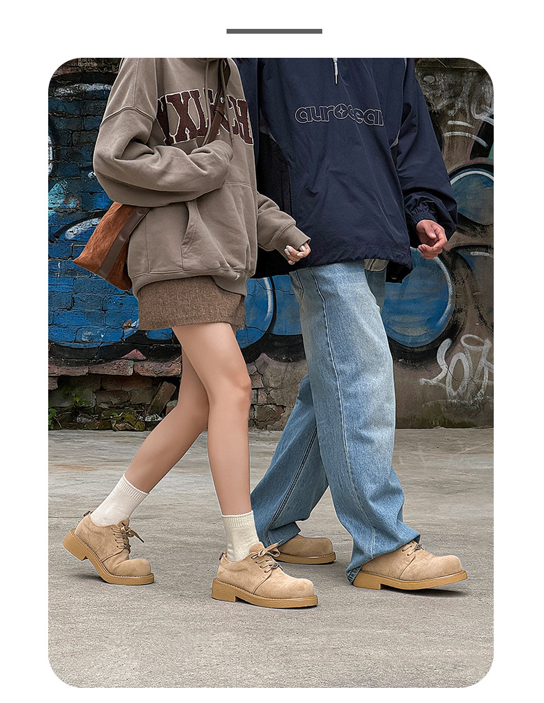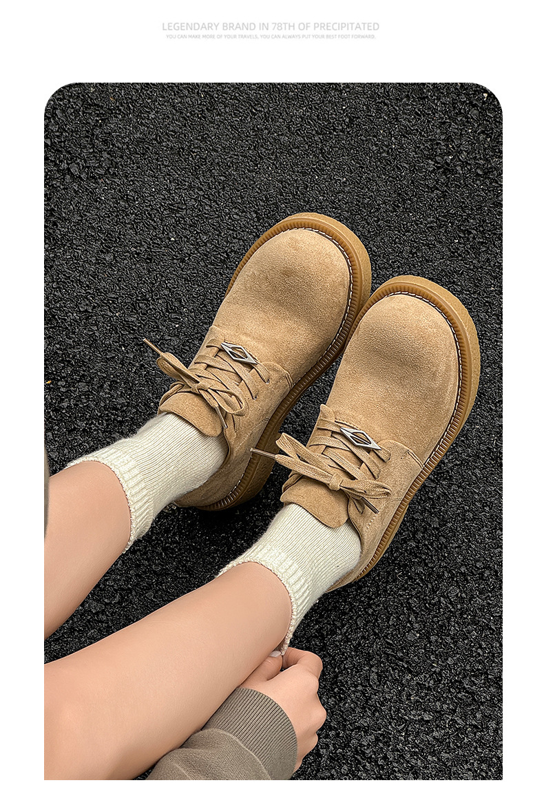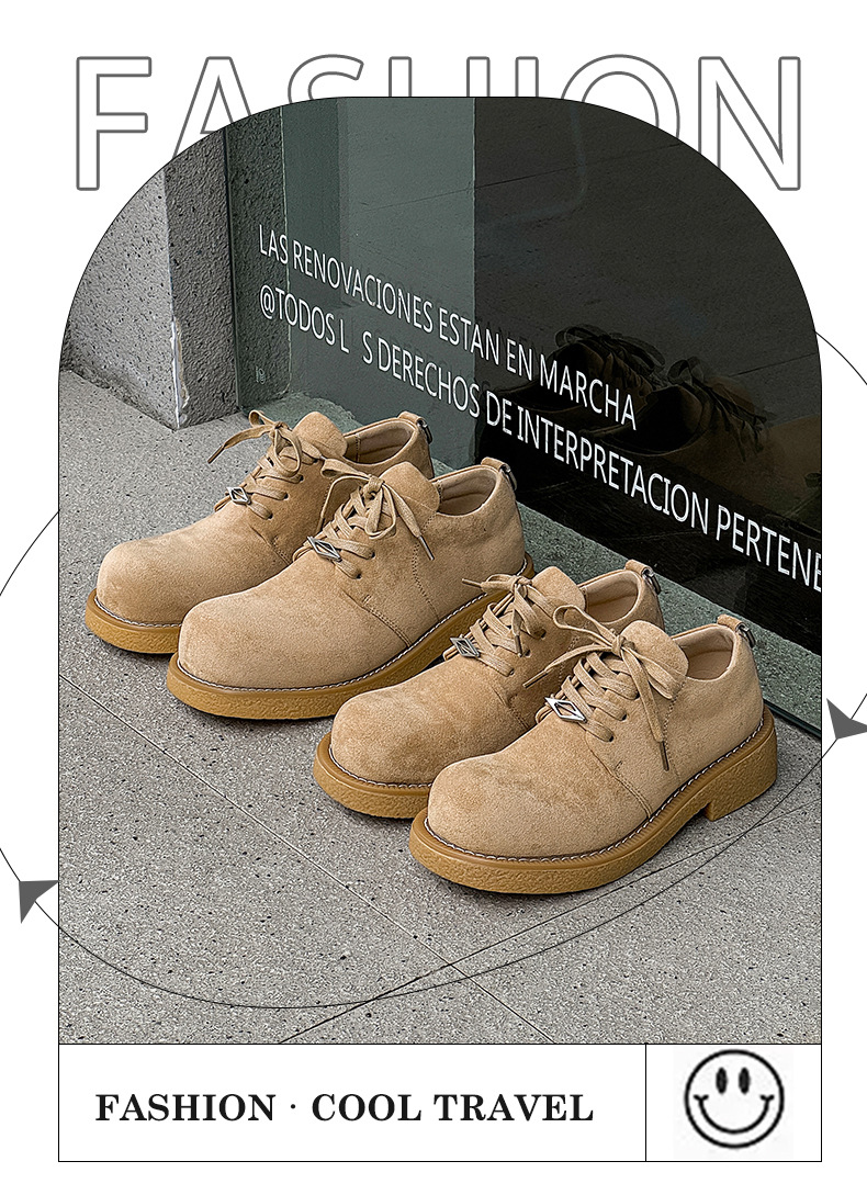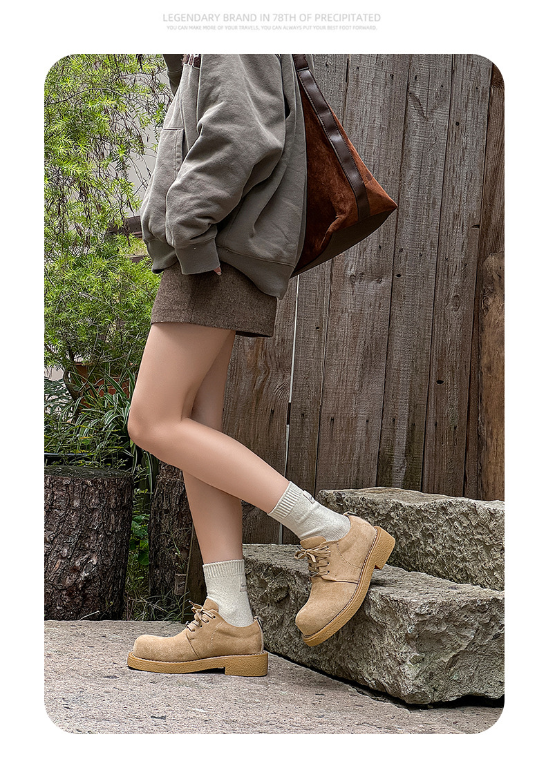 2024 가을과 겨울 둥근 발가락 미키 가죽 더비 큰 발가락 신발 낮은 최고 두꺼운 단독 높이 증가 유행 올 매치 캐주얼 가죽 신발스토어 가기