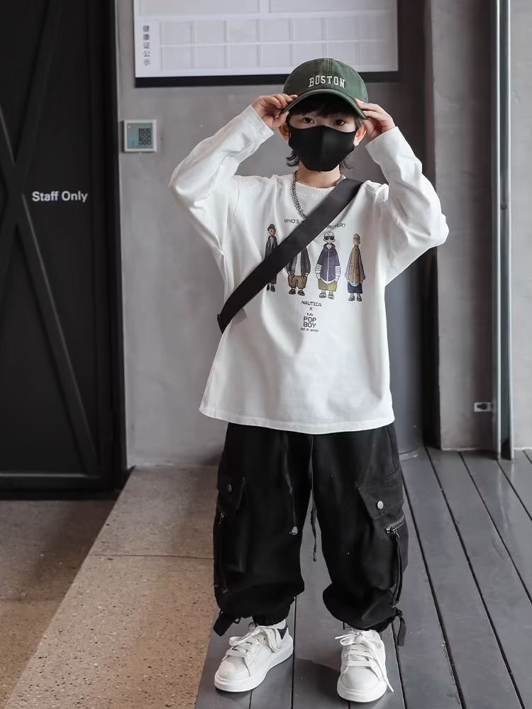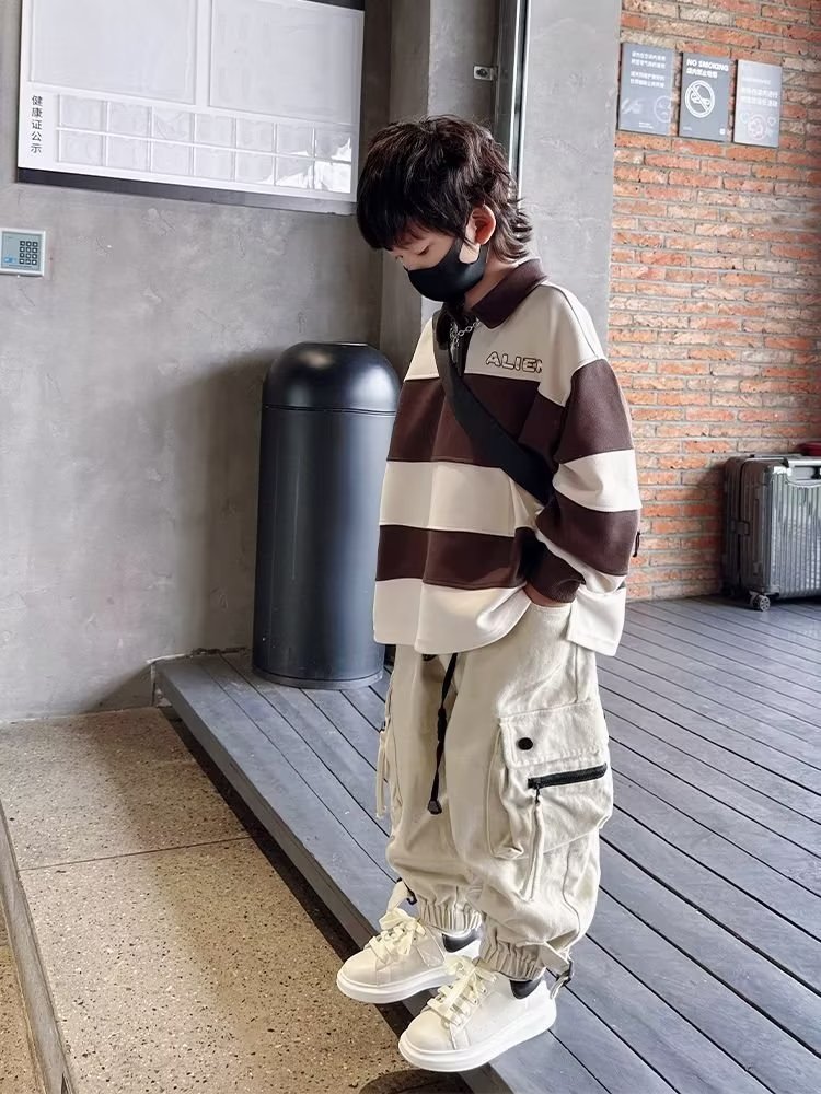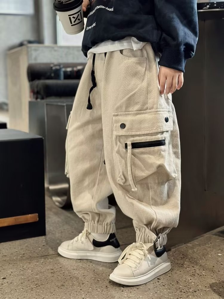아동복 소년 바지 어린이 봄과 가을 코일 바지 캐주얼 핸섬 2024 새로운 스타일의 중형 및 대형 어린이 얇은 올 매치 바지