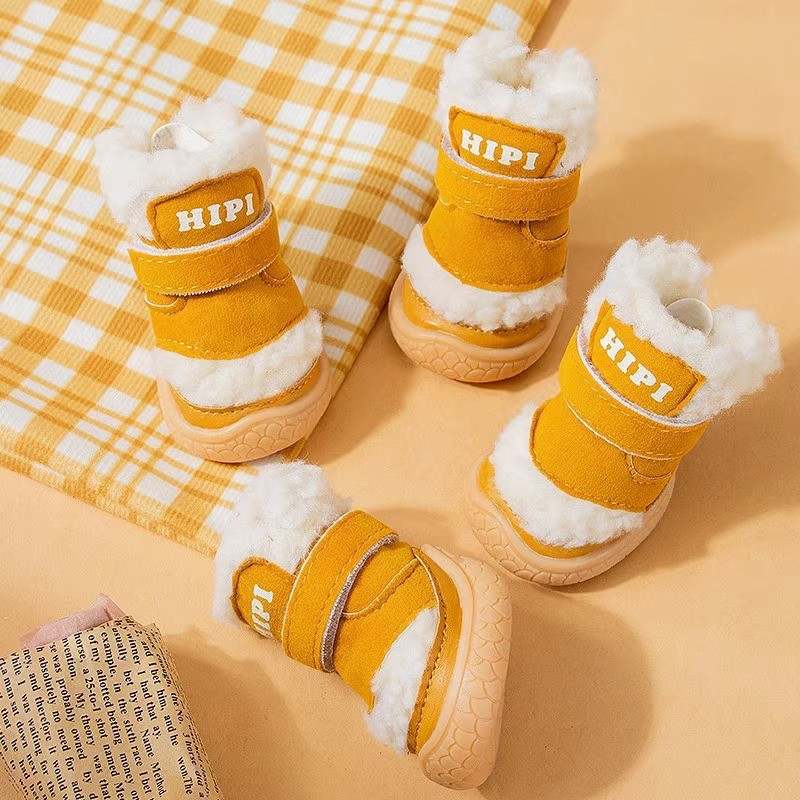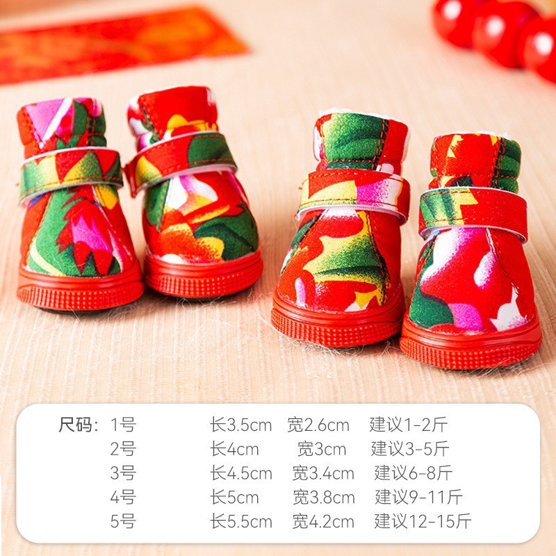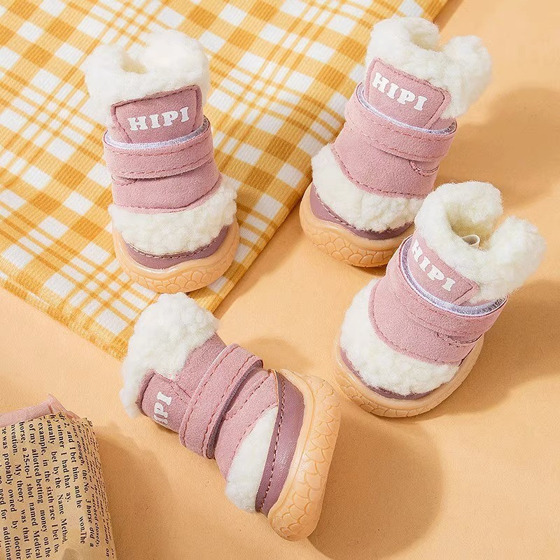 가을과 겨울 강아지 신발은 두꺼운 면화 신발을 따뜻하게합니다. 미끄럼 방지 개 발 4 개의 애완 동물 신발