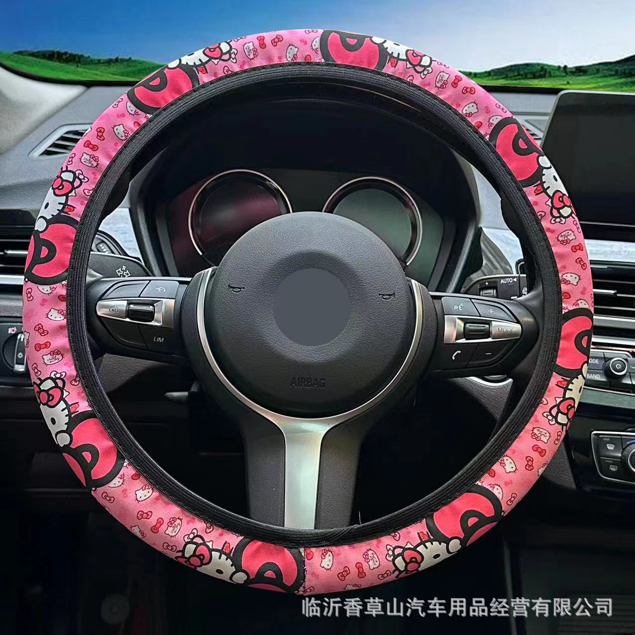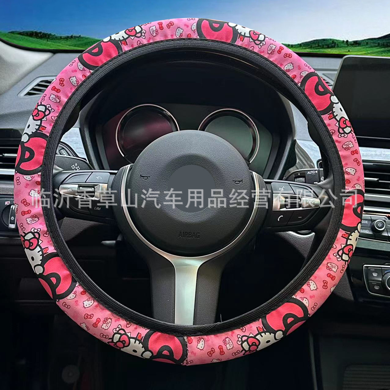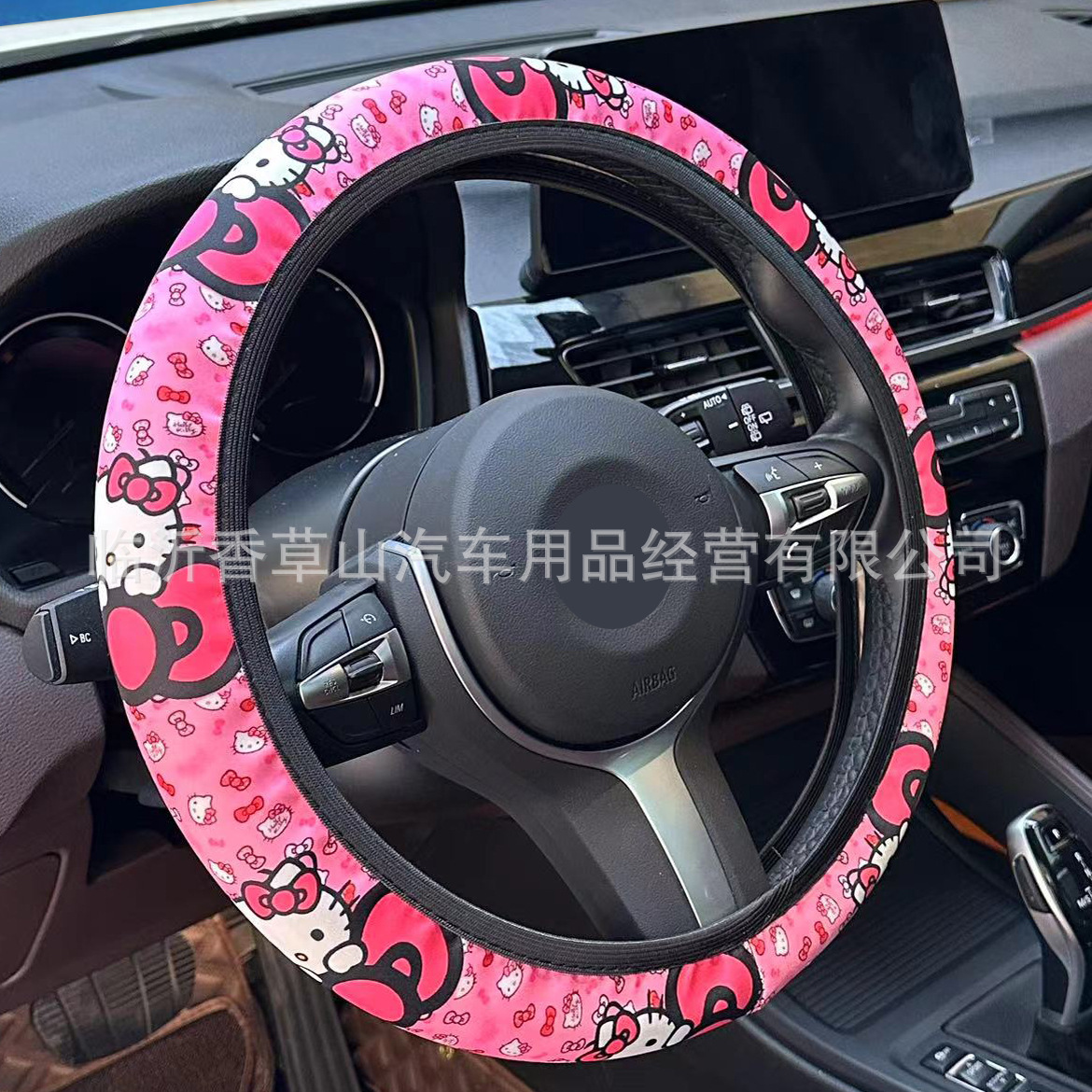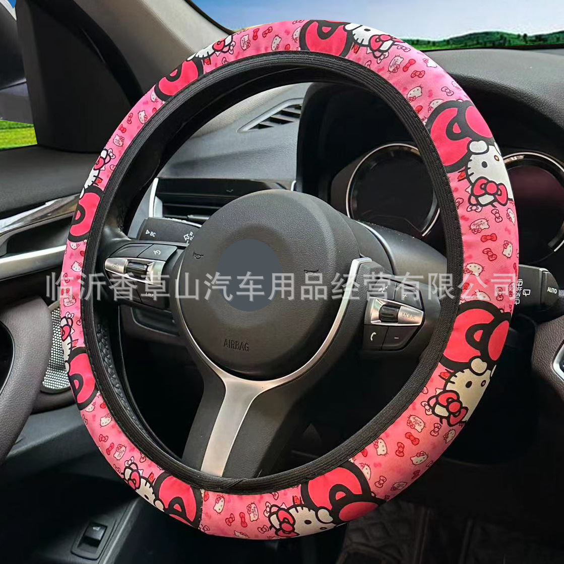 국경 간 자동차 스티어링 휠 커버 핑크 KT 울 내부 링 스티어링 휠 커버 인쇄 탄성 핸들 커버 대외 무역스토어 가기
