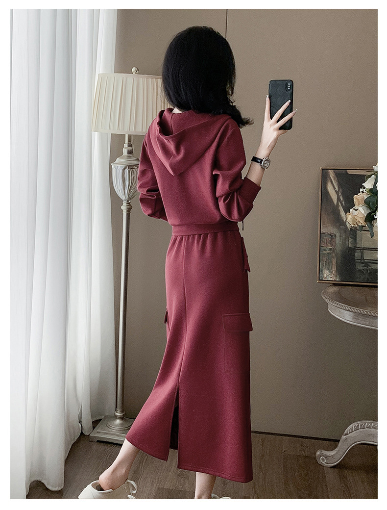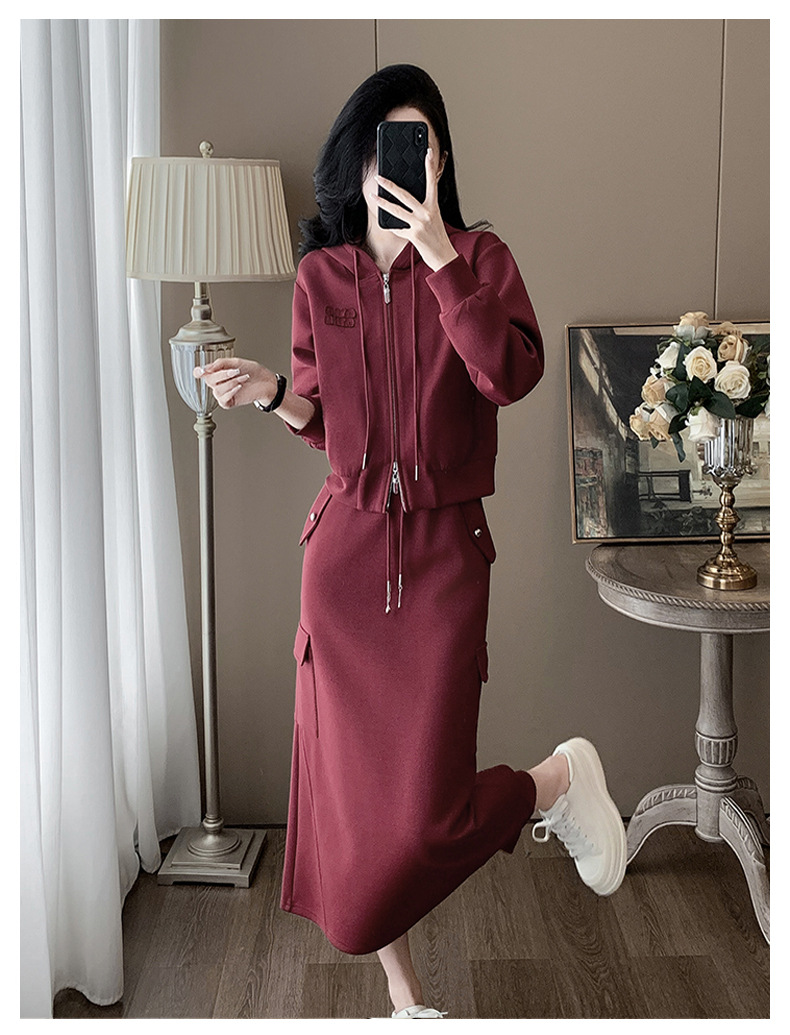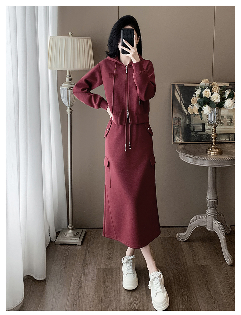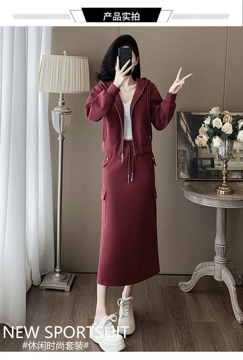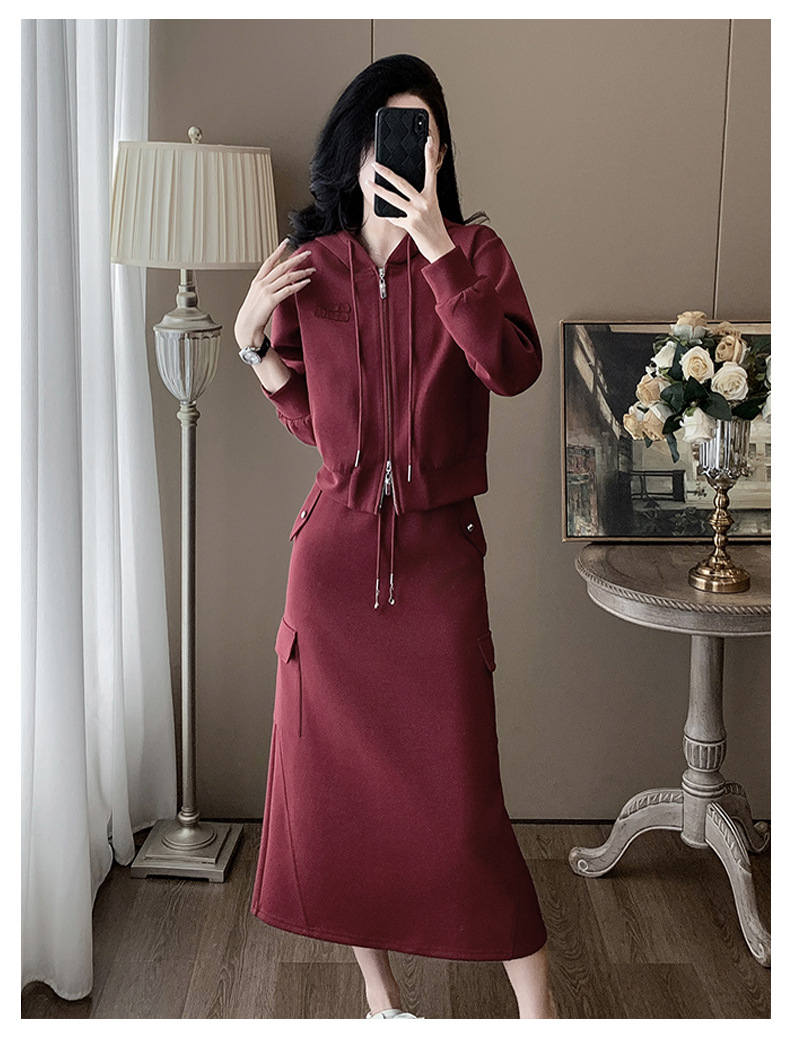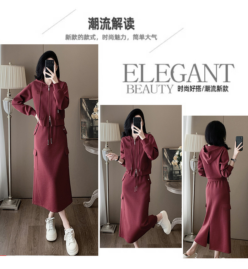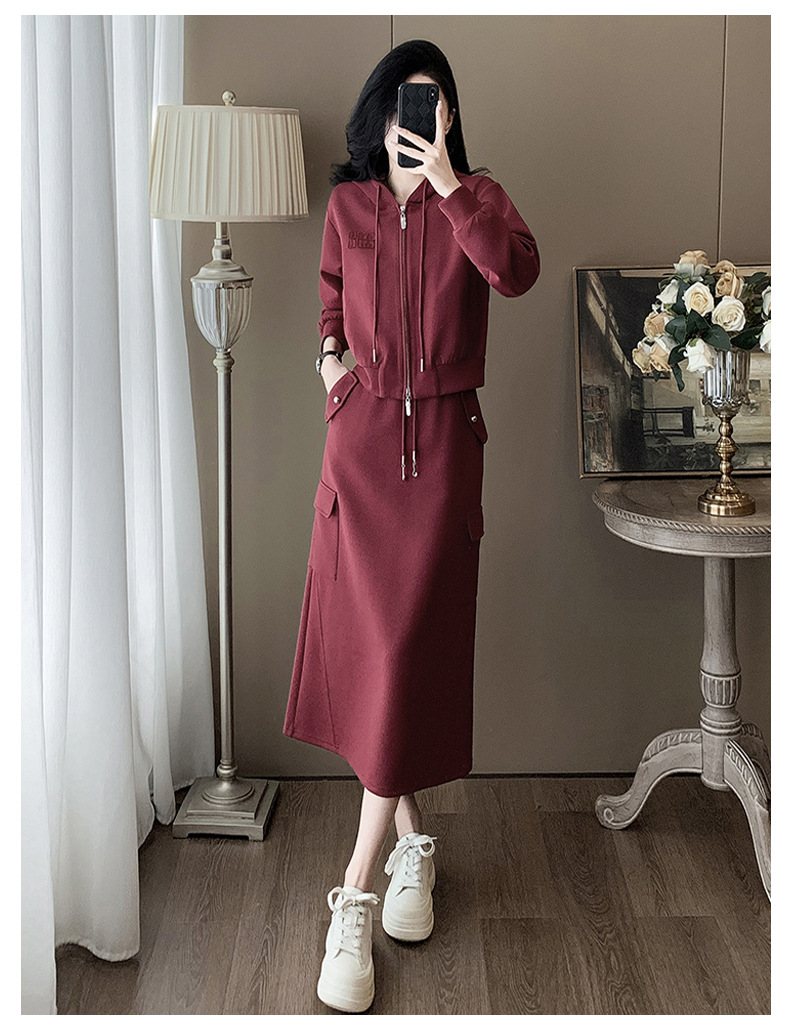 스포츠 레저 세트 여성의 가을 2024 새로운 패션 하이 엔드 블랙 후드 스웨터 스커트 투피스 세트스토어 가기