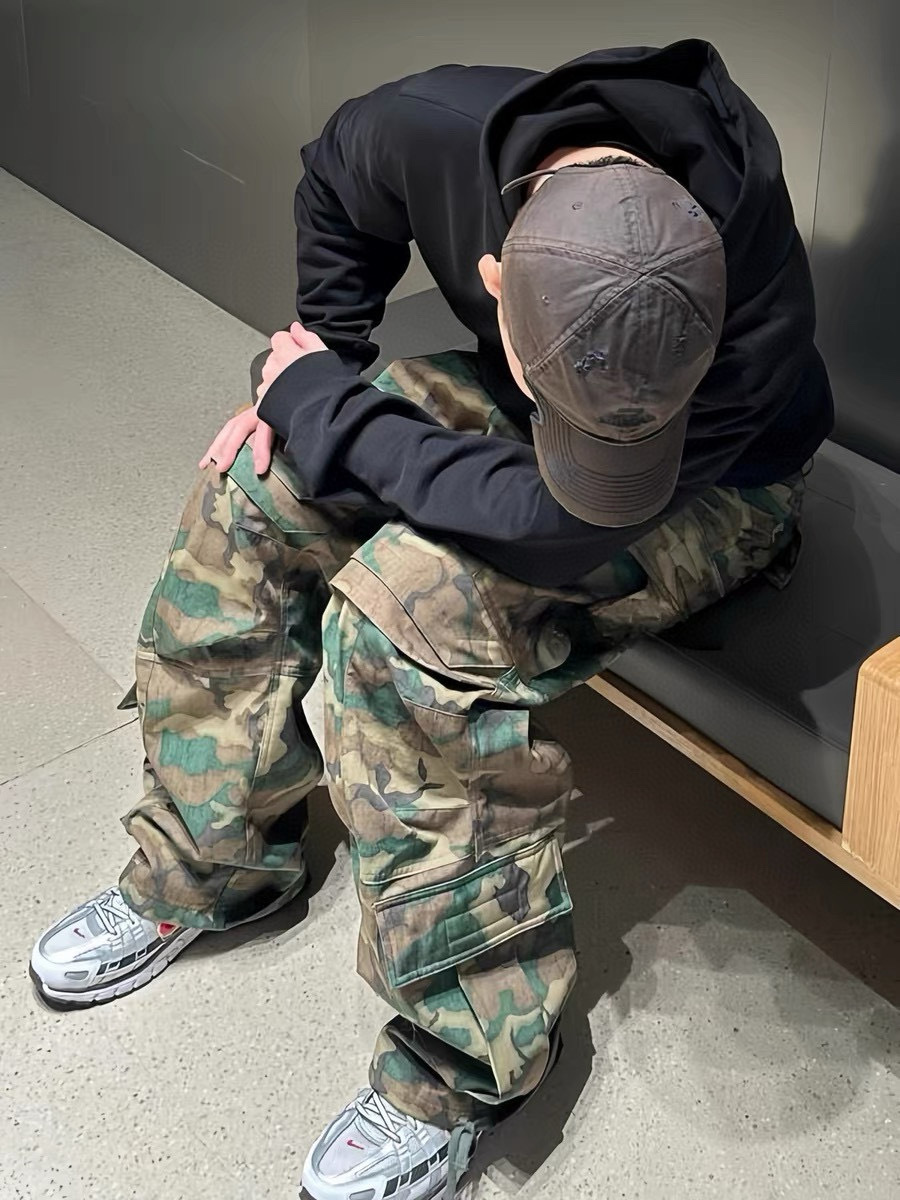 FAR 아카이브 미국식 하이 스트리트 위장 멀티 포켓 기능성 바지 분위기 스타일 느슨한 스트레이트 바지 남성스토어 가기