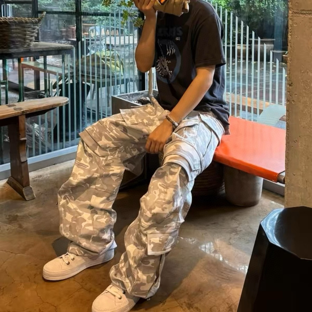 FAR 아카이브 미국식 하이 스트리트 위장 멀티 포켓 기능성 바지 분위기 스타일 느슨한 스트레이트 바지 남성