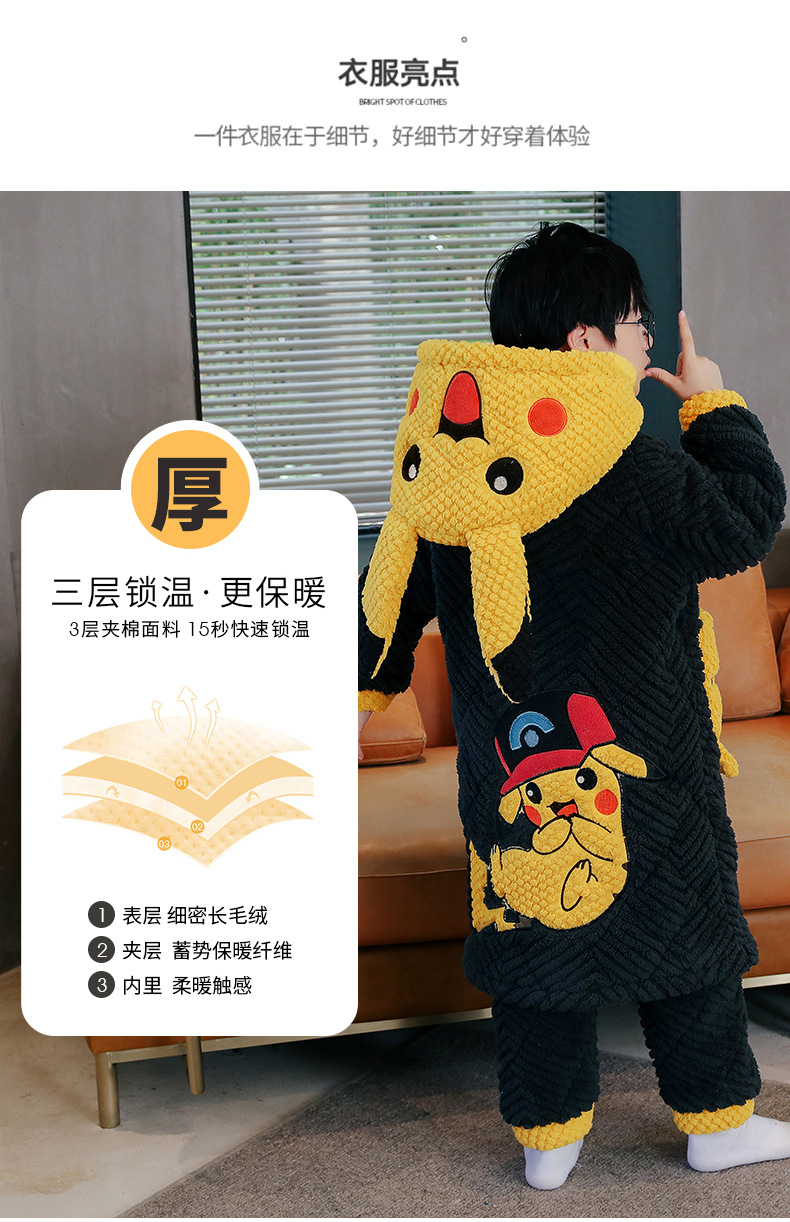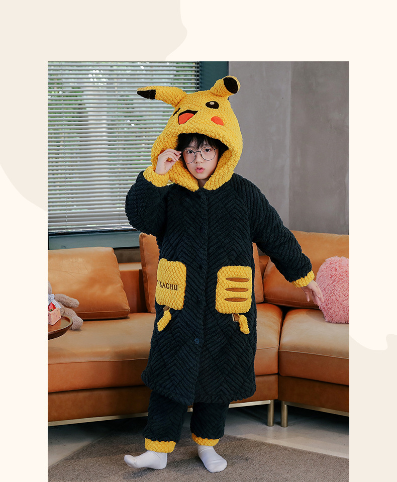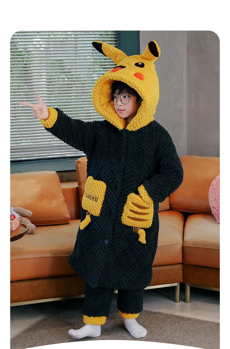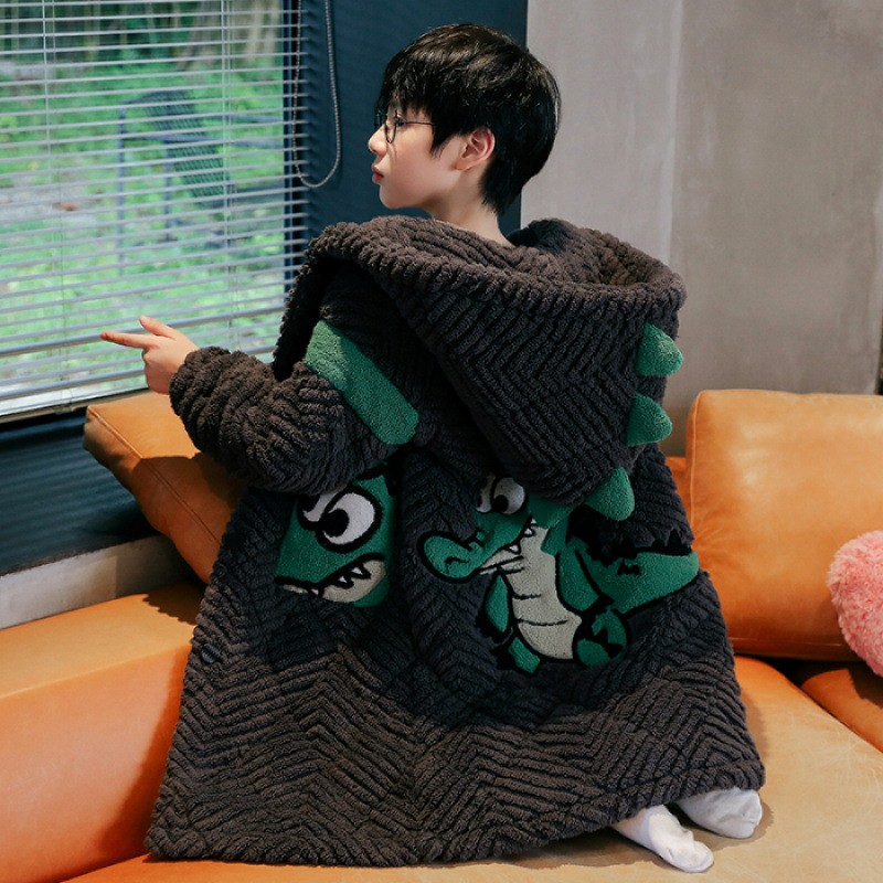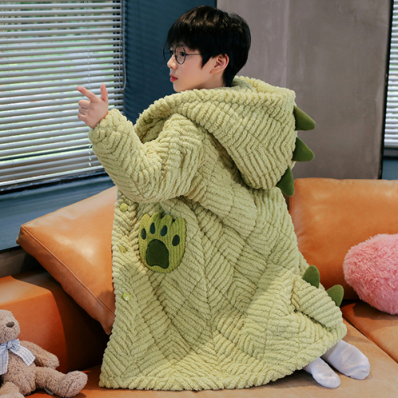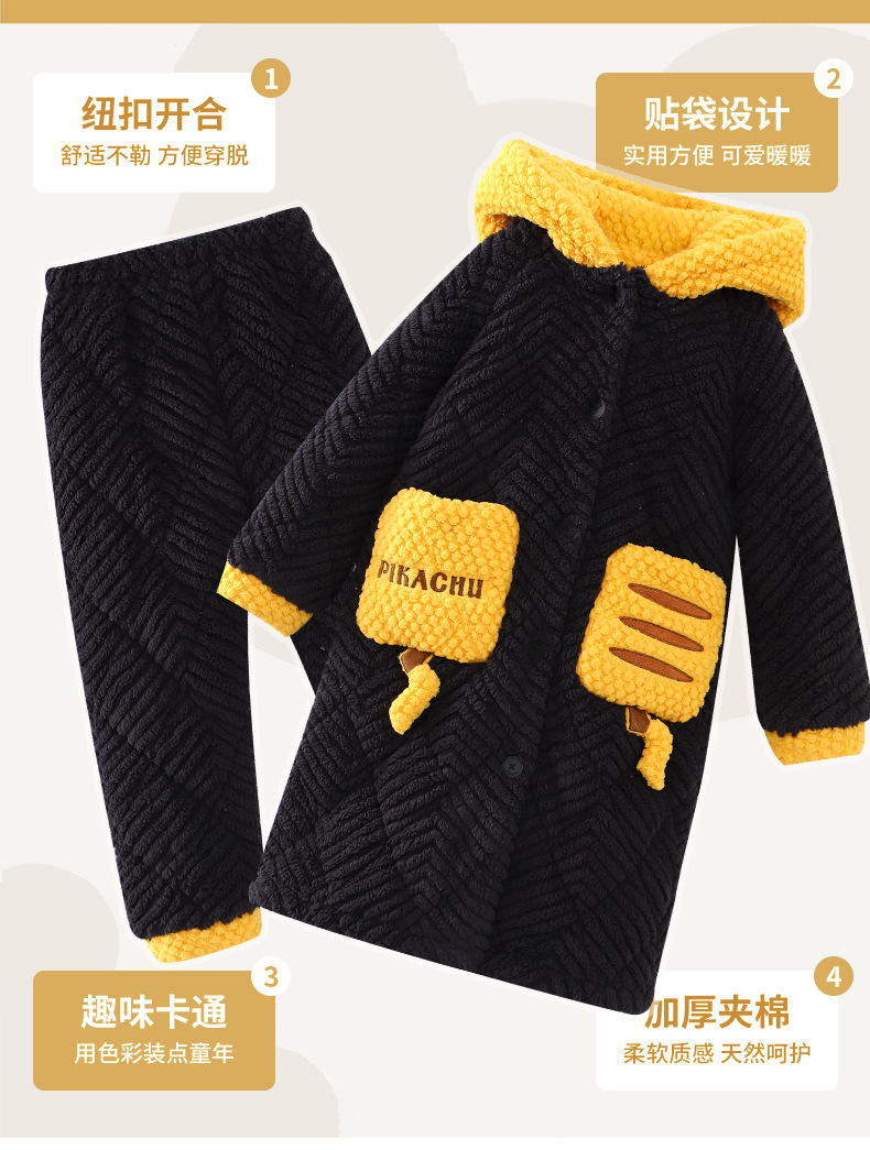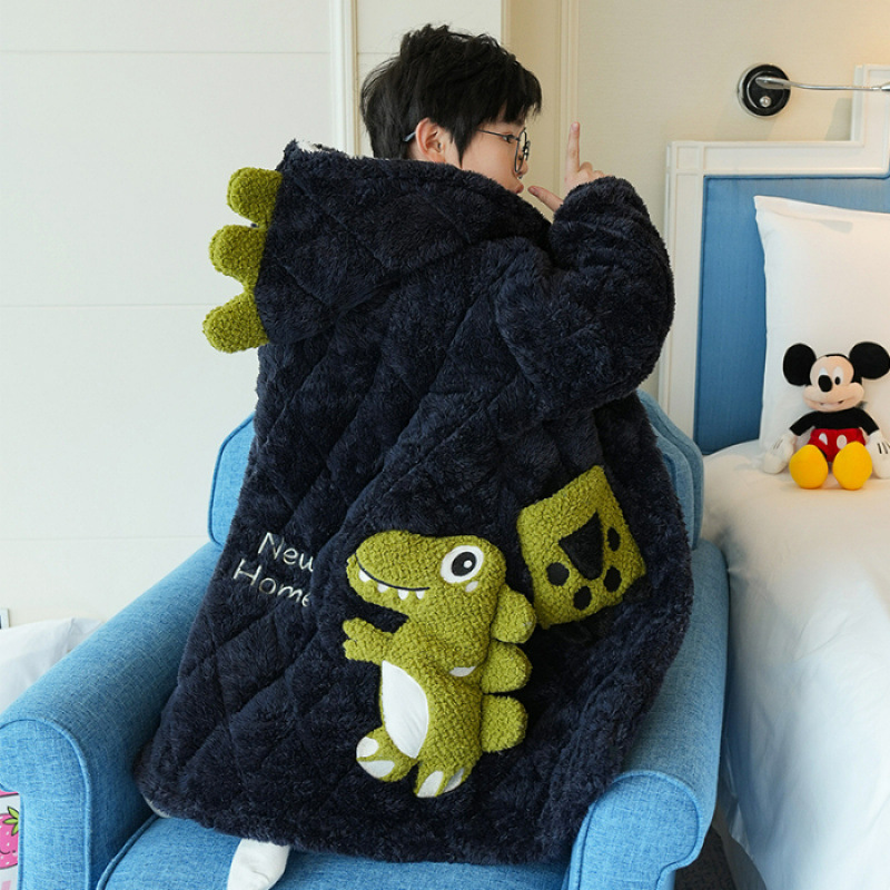 겨울 어린이 잠옷 소년 소년 3 층 퀼트 겨울 기모 두꺼운 산호 양털 긴 홈 옷 세트
