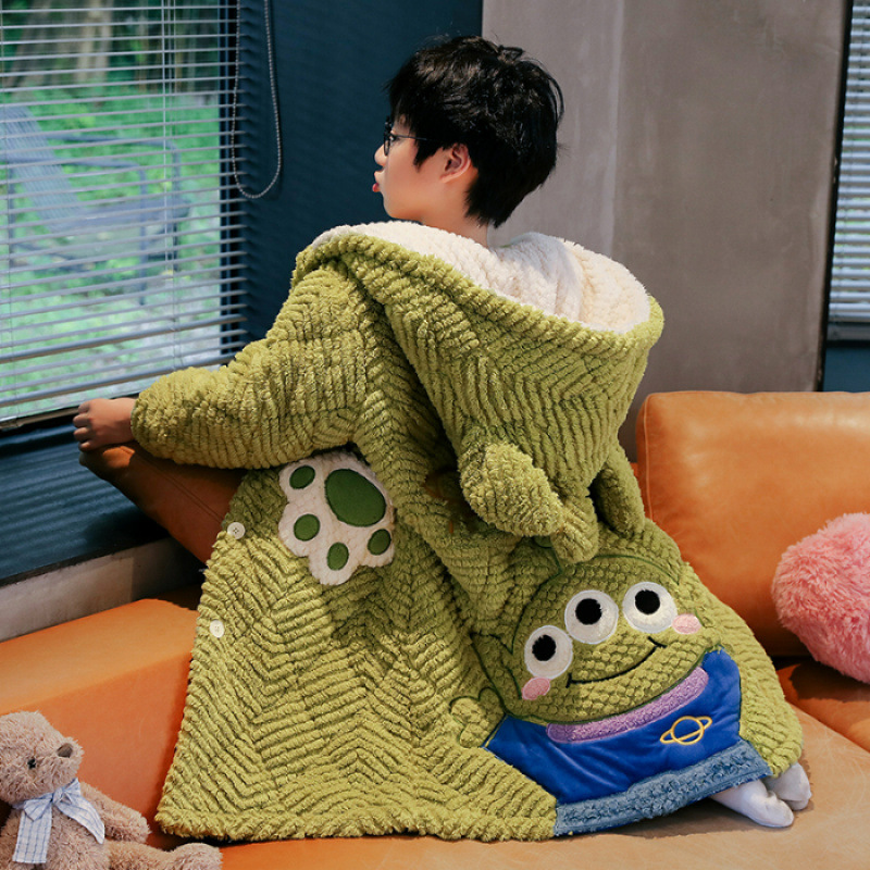 겨울 어린이 잠옷 소년 소년 3 층 퀼트 겨울 기모 두꺼운 산호 양털 긴 홈 옷 세트스토어 가기