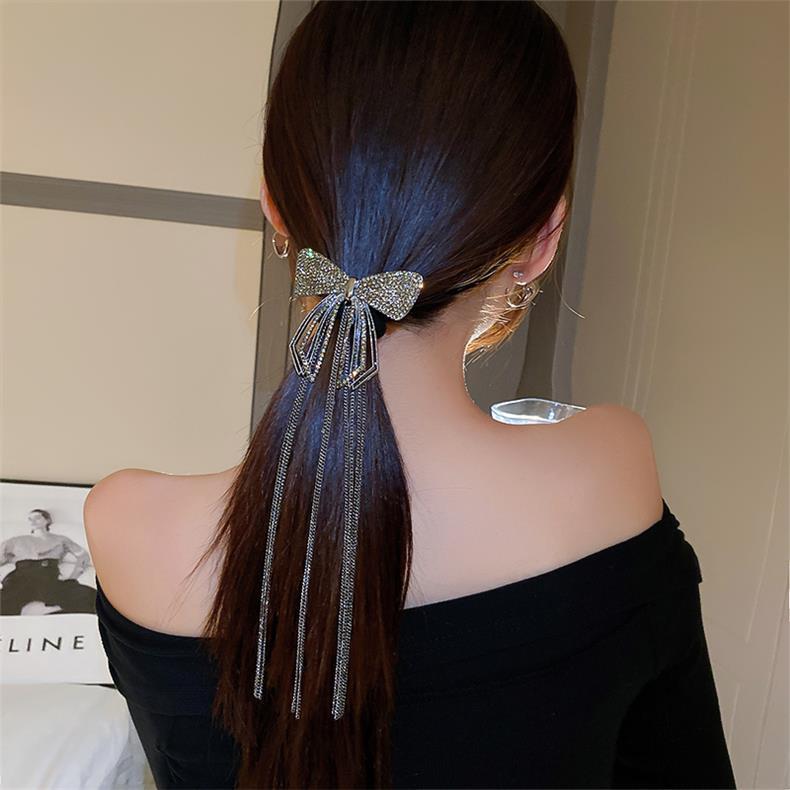 • 반짝이는 다이아몬드 플라워 태슬 헤어 클립