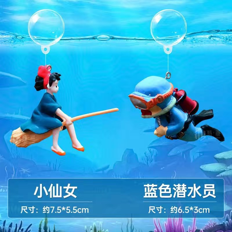 작은 물고기 탱크 풍경 장식 떠있는 마녀 서스펜션 볼 물고기 탱크 캐릭터 인테리어 요정 창조적 인 세트스토어 가기