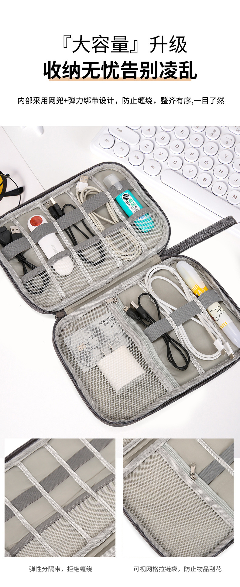 디지털 액세서리 보관 가방, 간단한 휴대용 가방, 클러치 백, 보조베터리 보관 및 보호 가방, 데이터 케이블 보관