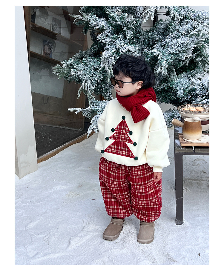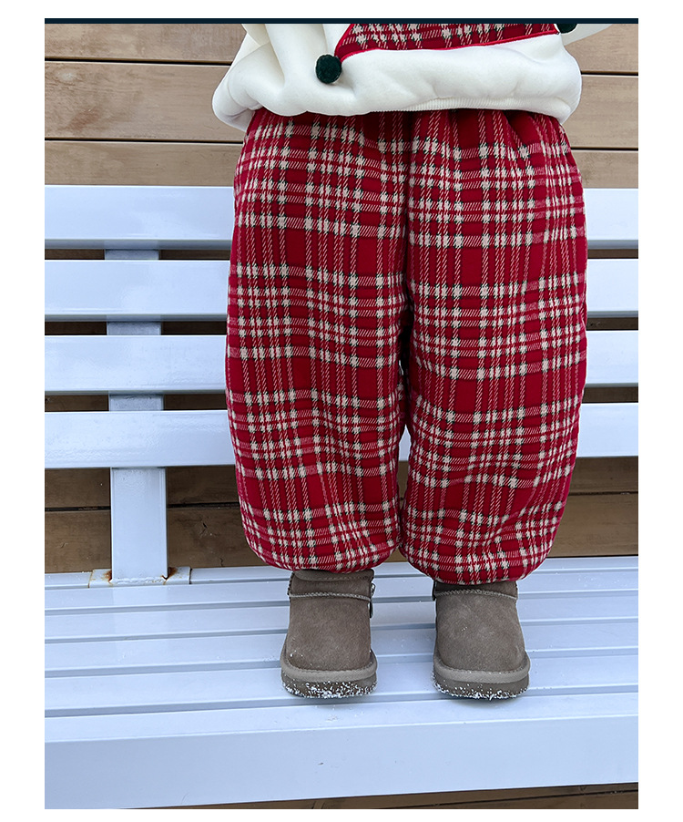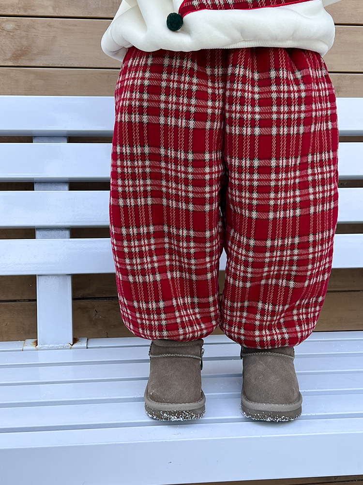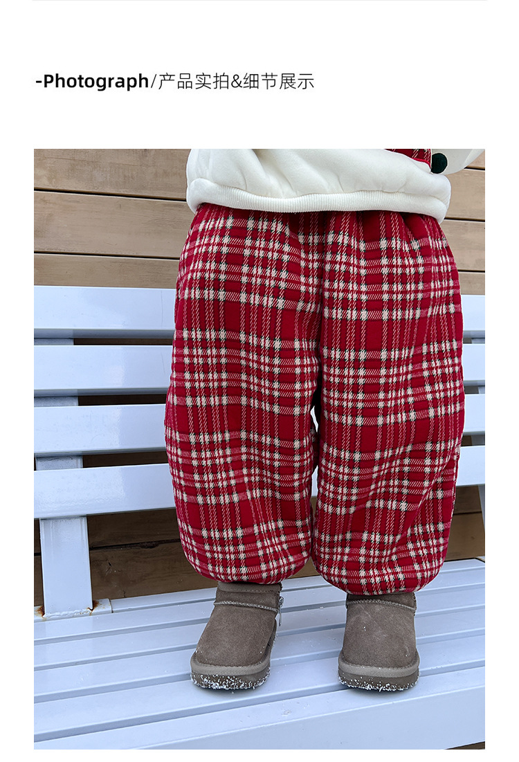어린이 원피스 벨벳 바지 겨울 소년의 따뜻한 바지 어린이 아기의 격자 무늬 다리 바지 잘 생긴 겨울 빨간 바지