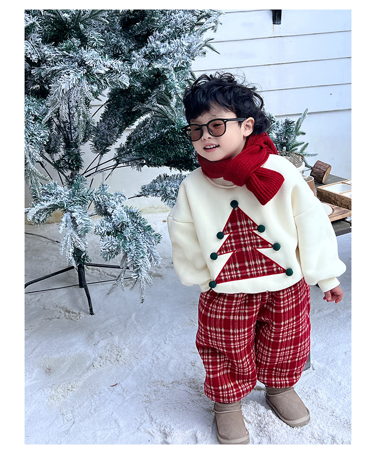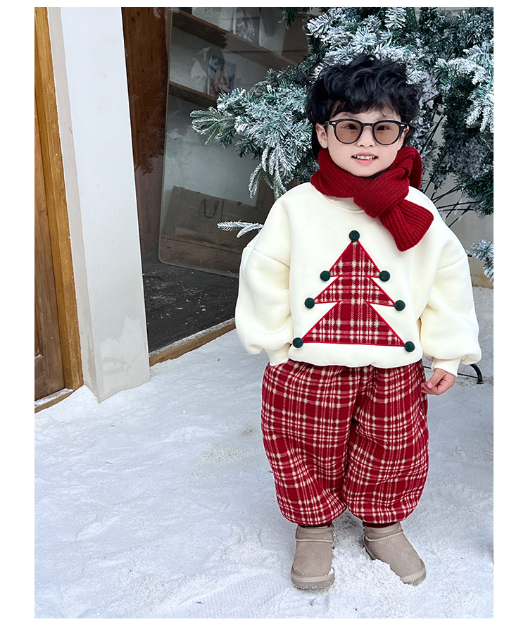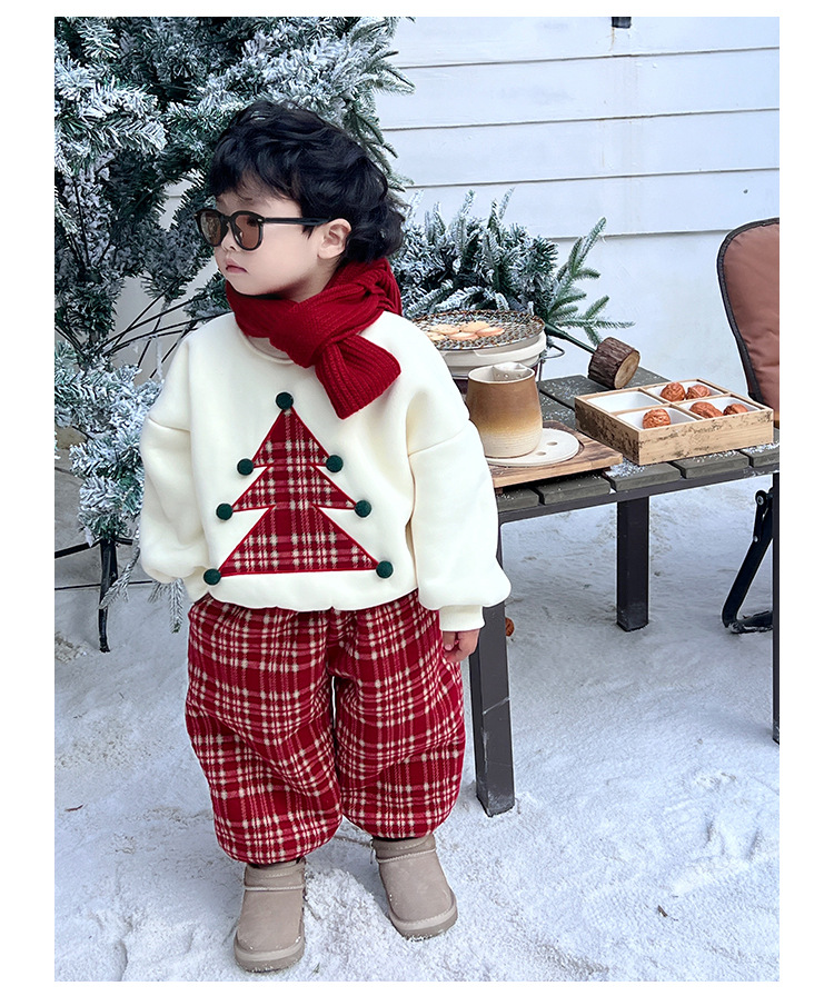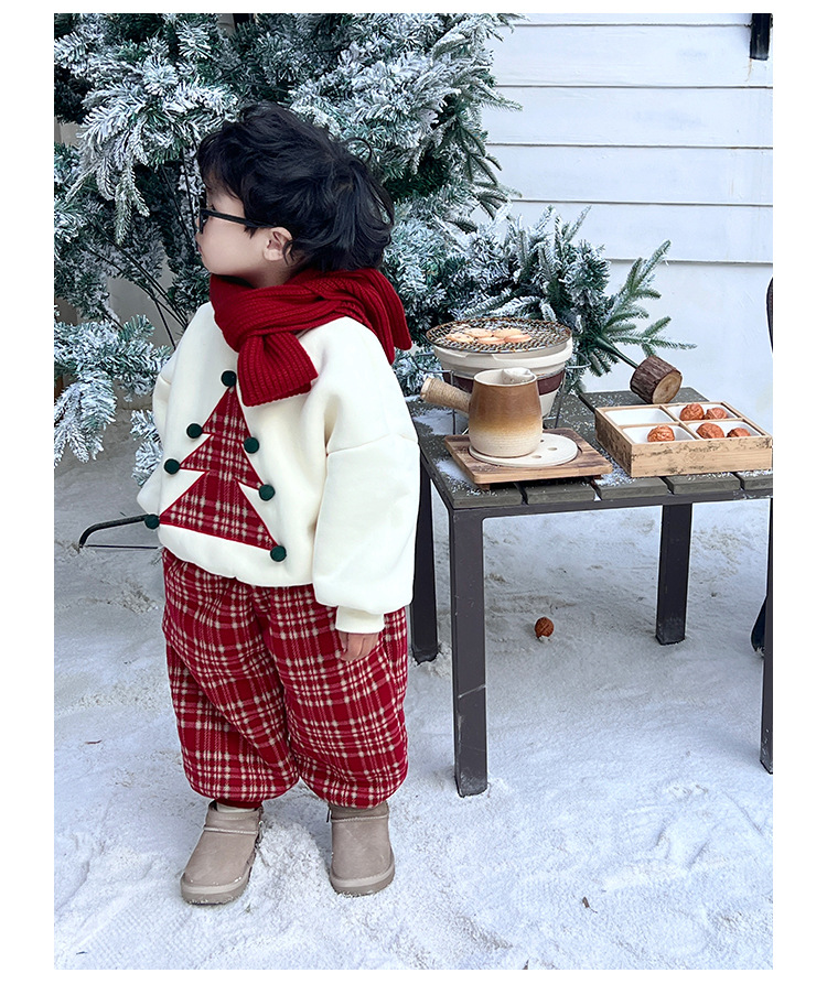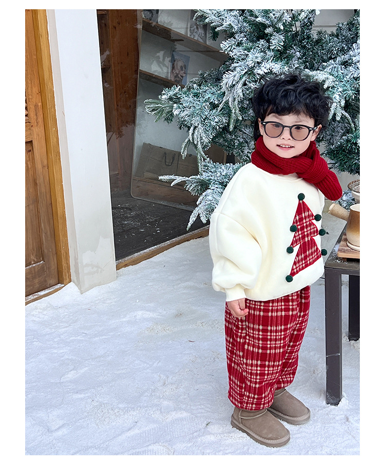 어린이 원피스 벨벳 바지 겨울 소년의 따뜻한 바지 어린이 아기의 격자 무늬 다리 바지 잘 생긴 겨울 빨간 바지