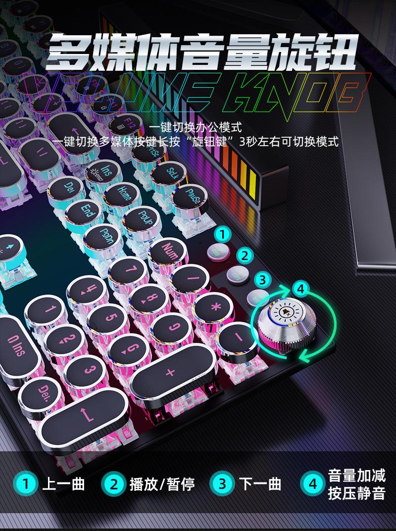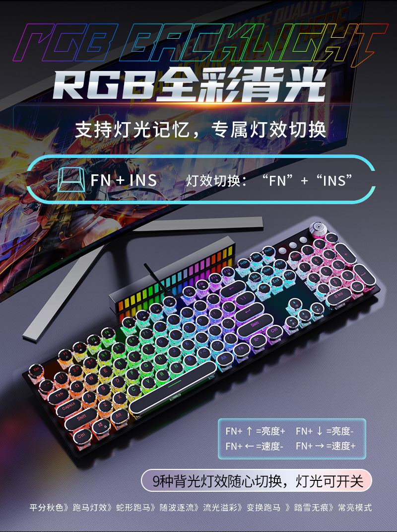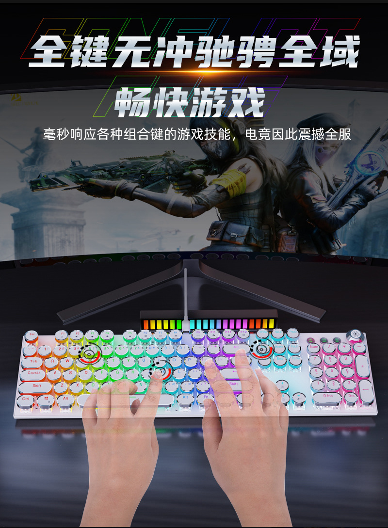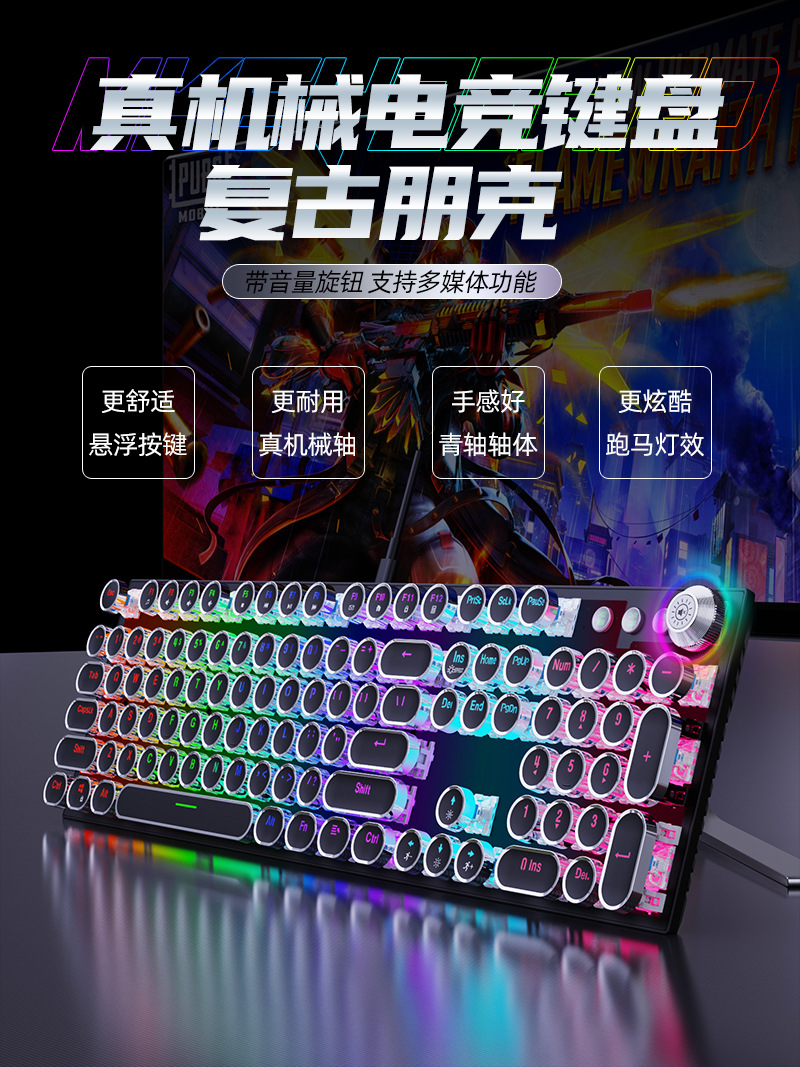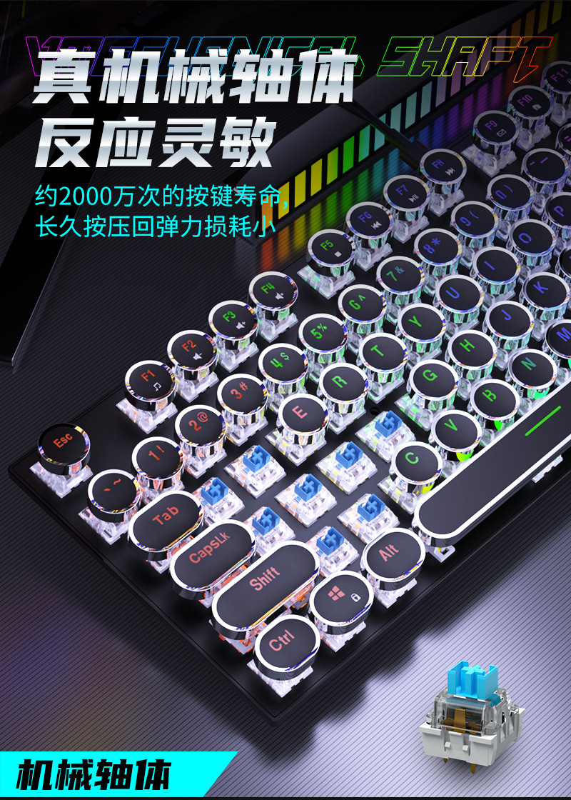 소스 공장 Steampunk 3 모드 RGB 플러그인 샤프트 기계식 키보드 컴퓨터 게임 독점 도매 대리점 멀티미디어