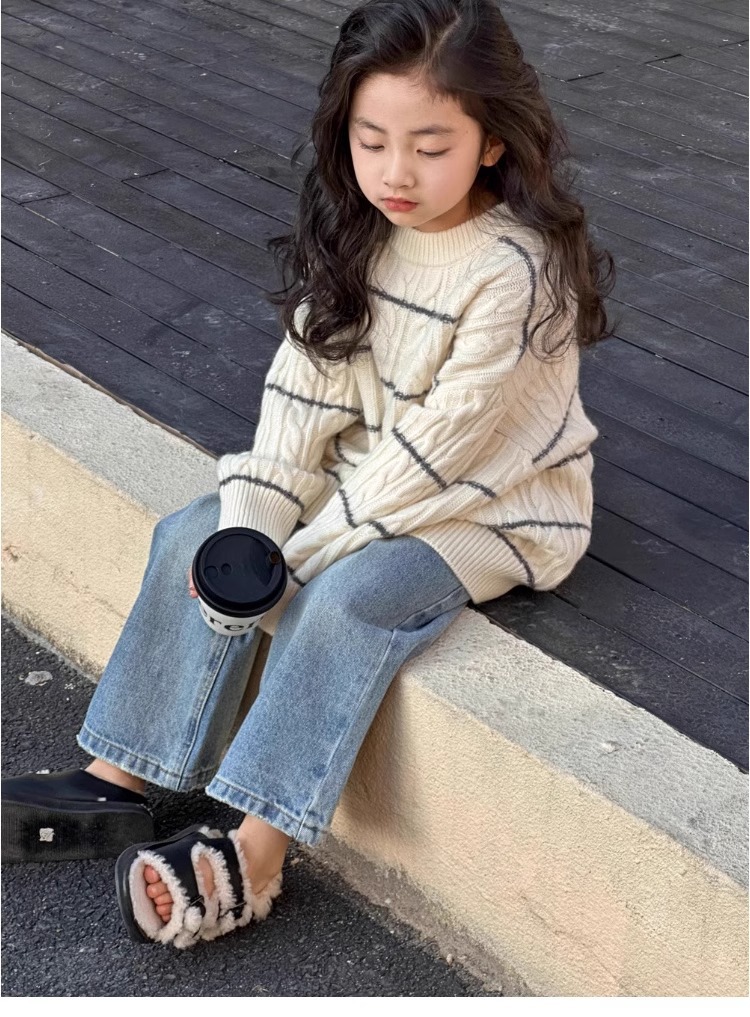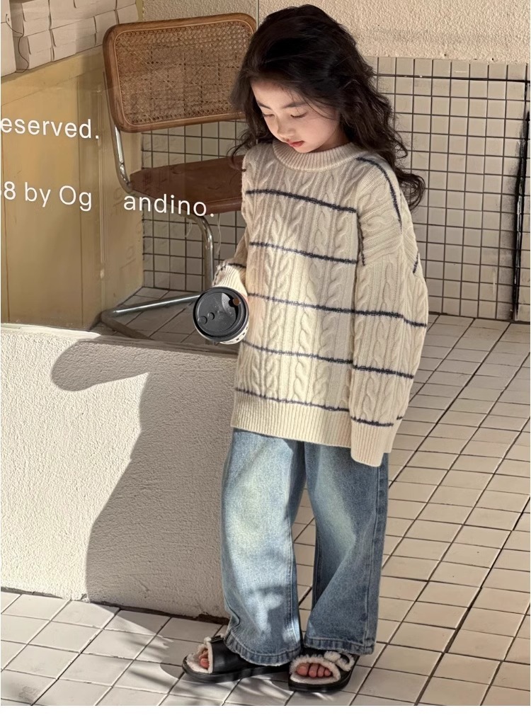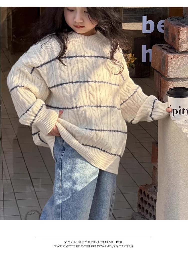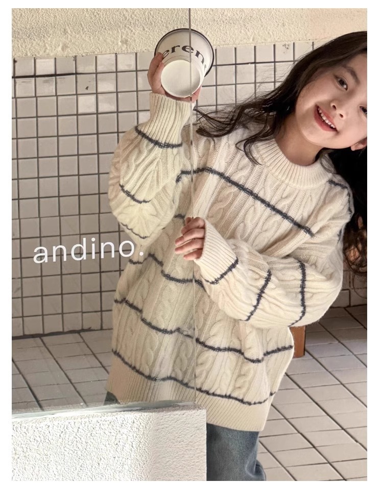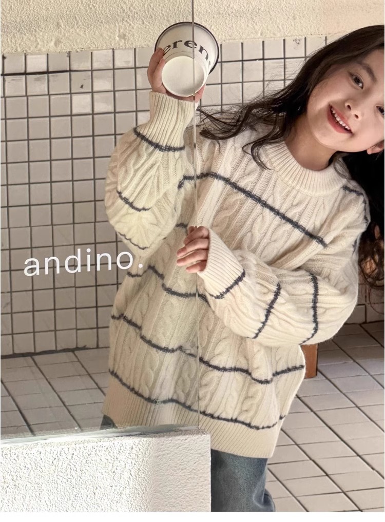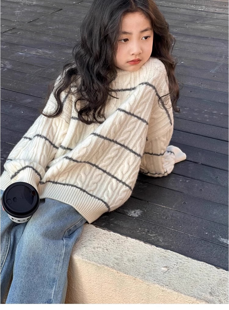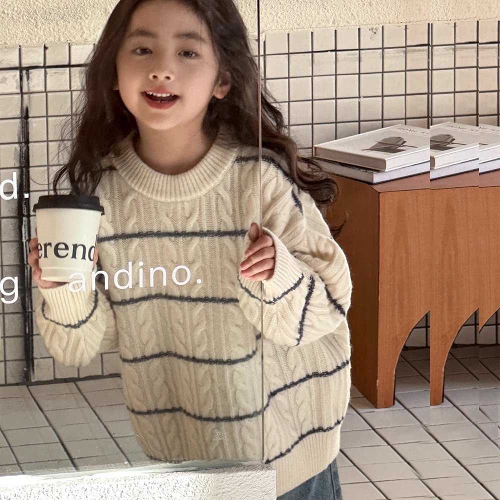 소녀 스웨터 어린이 겨울 2024 새로운 봄과 가을 니트 베이스 셔츠 가을과 겨울 옷 게으른 스타일 큰 어린이 탑스토어 가기