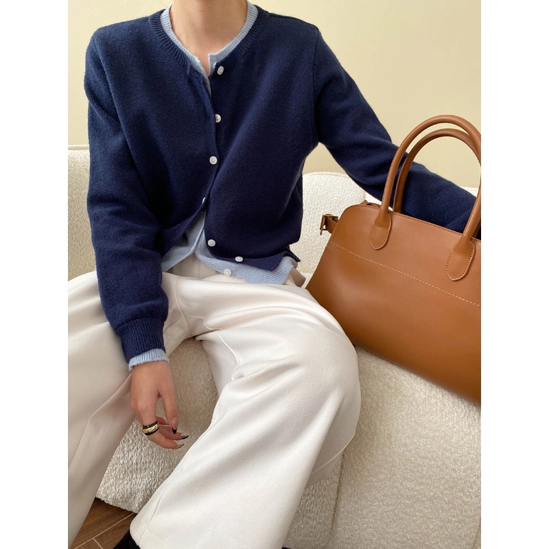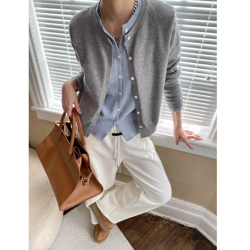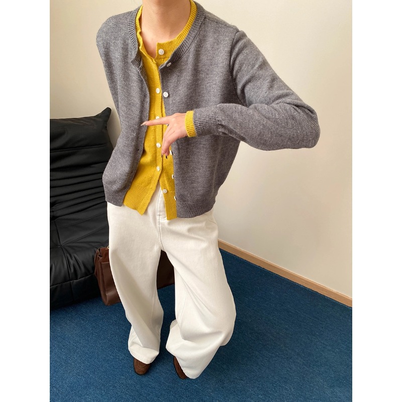 시만 블로거 세련된 가짜 투피스 대비 컬러 스티칭 슬림베이스 니트 카디건 SN6884