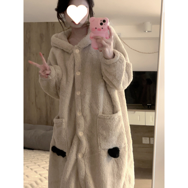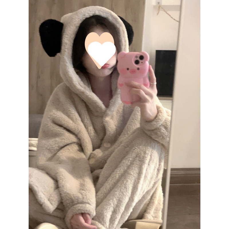잠옷 여성의 두꺼운 새 산호 양털 겨울 세트 후드 봉제 기숙사 잠옷 홈웨어스토어 가기