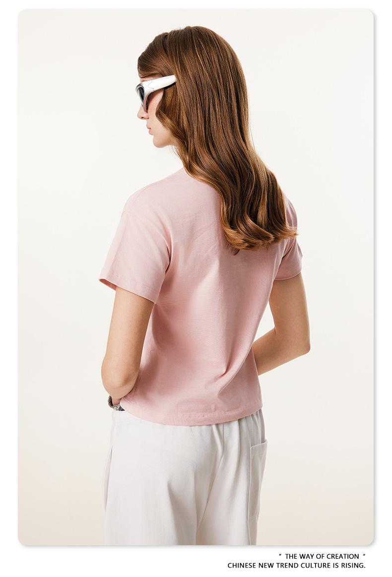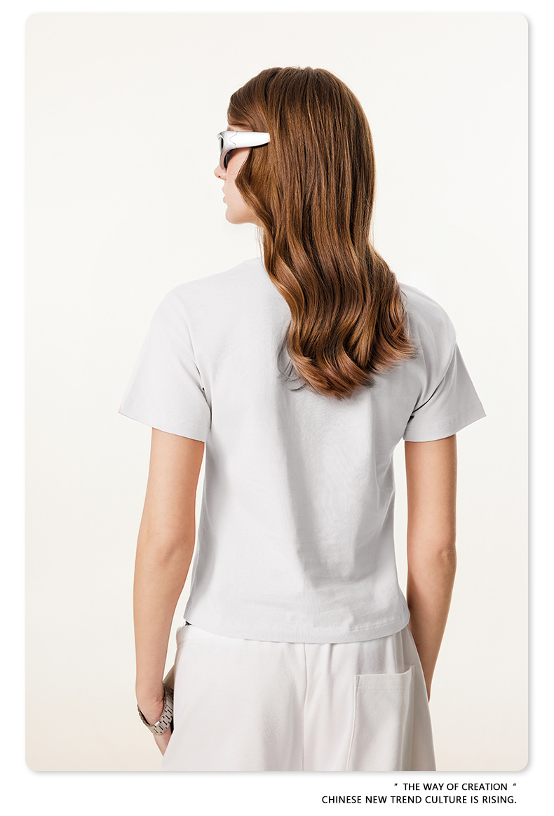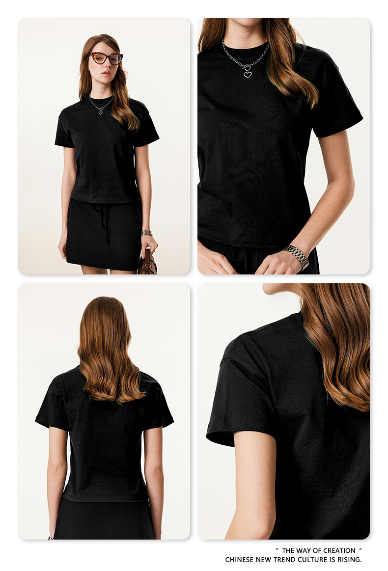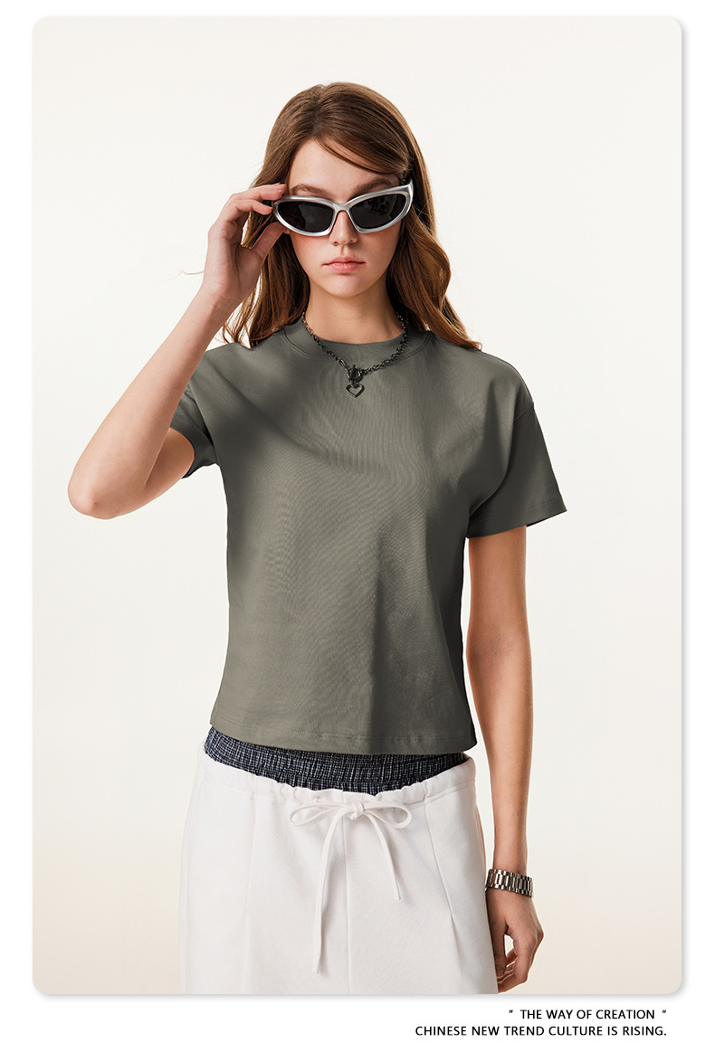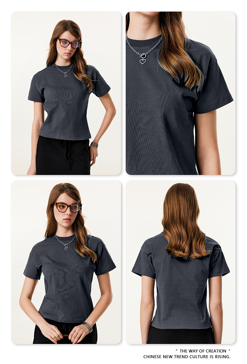 여성 의류 | 2025 여름 미국 안개 긴 스테이플 코튼 크루 넥 여성 t 캐주얼 스포츠 짧은 소매 어깨 슬리밍 티셔츠 여성스토어 가기