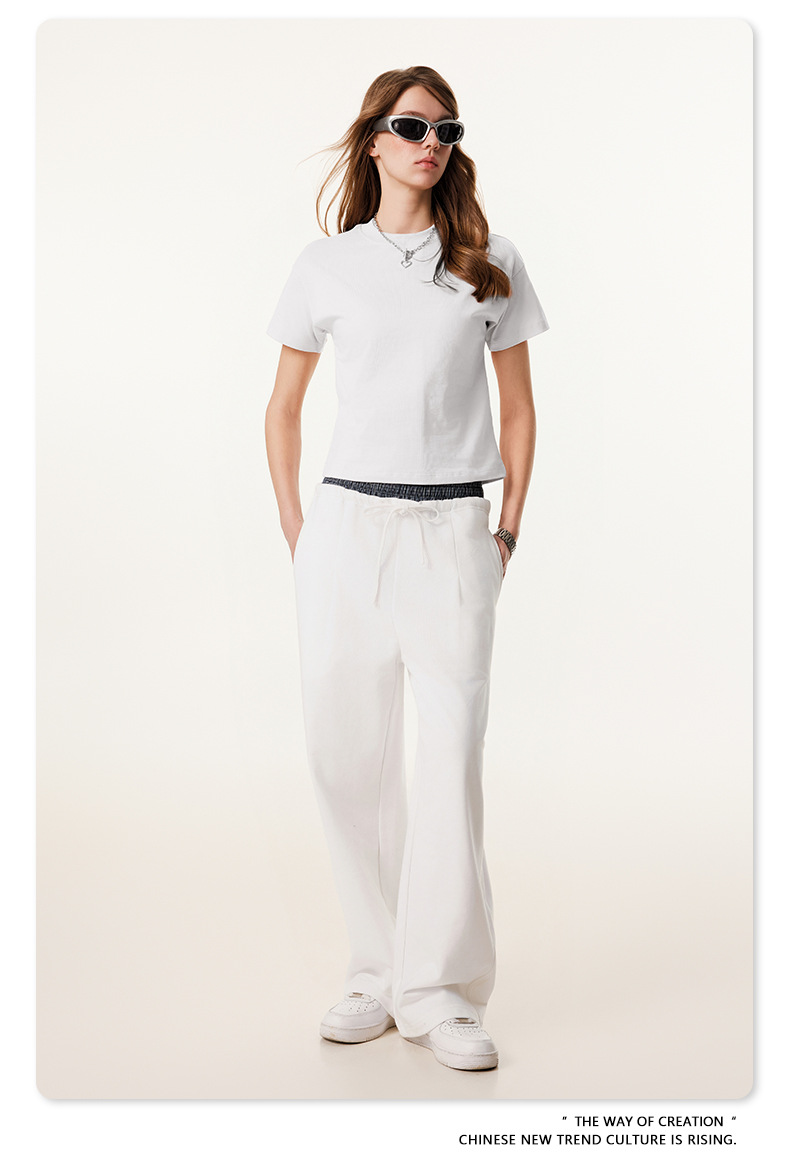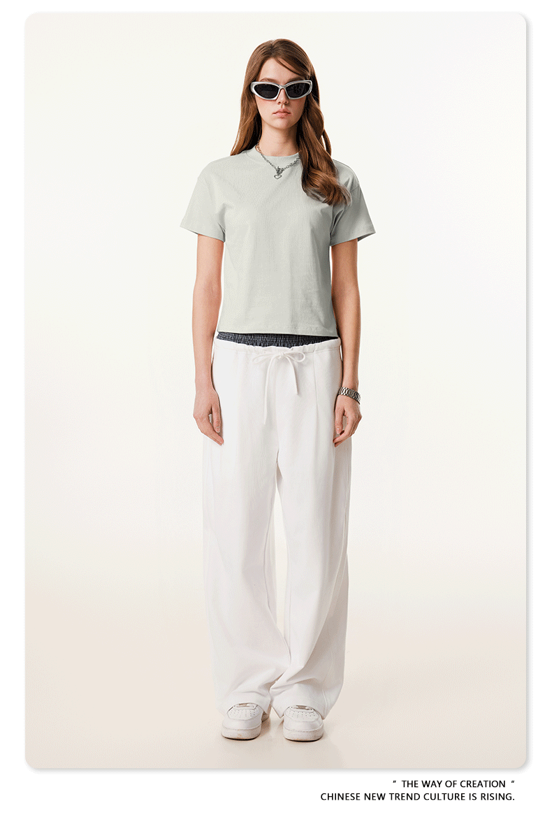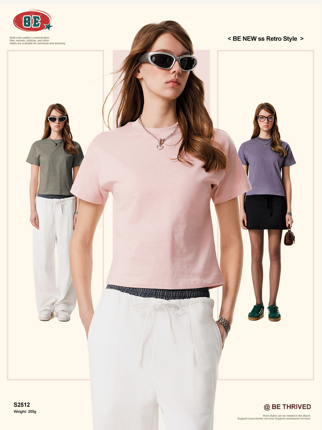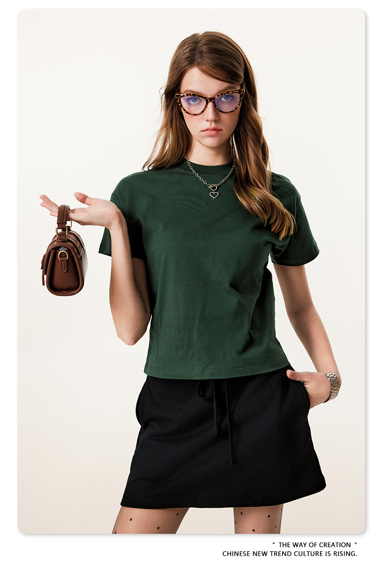 여성 의류 | 2025 여름 미국 안개 긴 스테이플 코튼 크루 넥 여성 t 캐주얼 스포츠 짧은 소매 어깨 슬리밍 티셔츠 여성스토어 가기