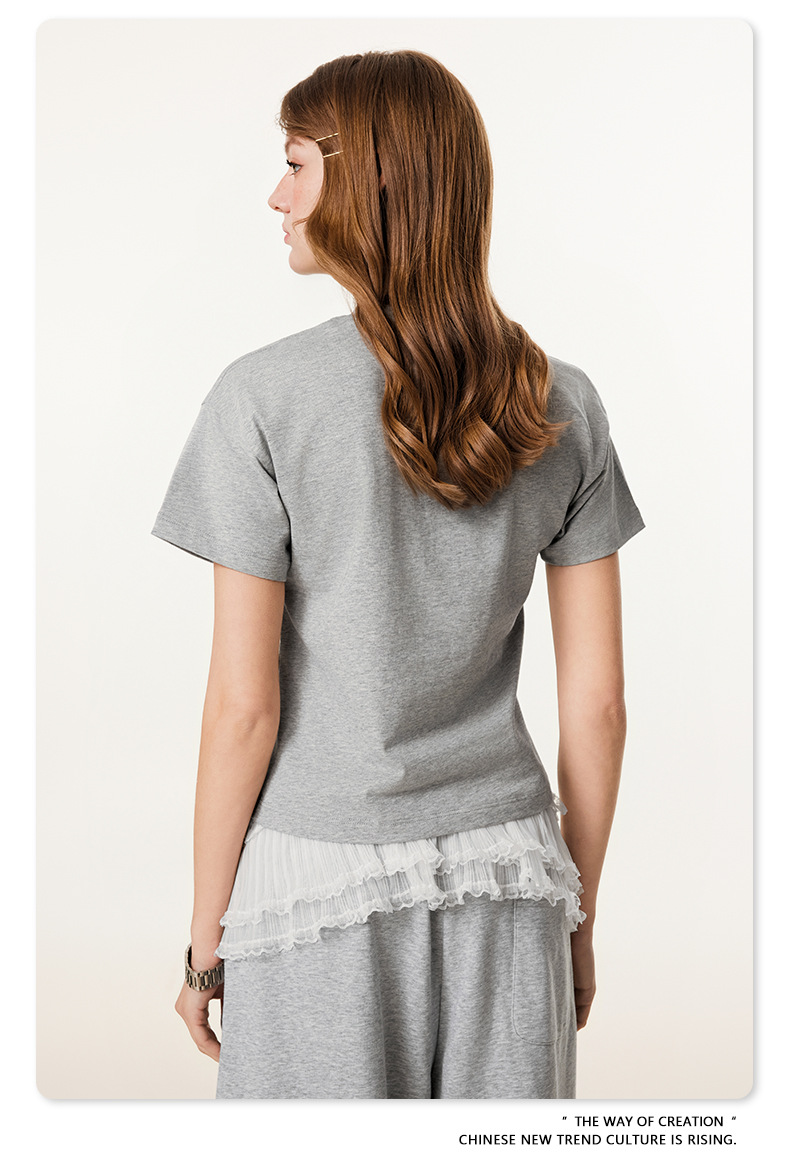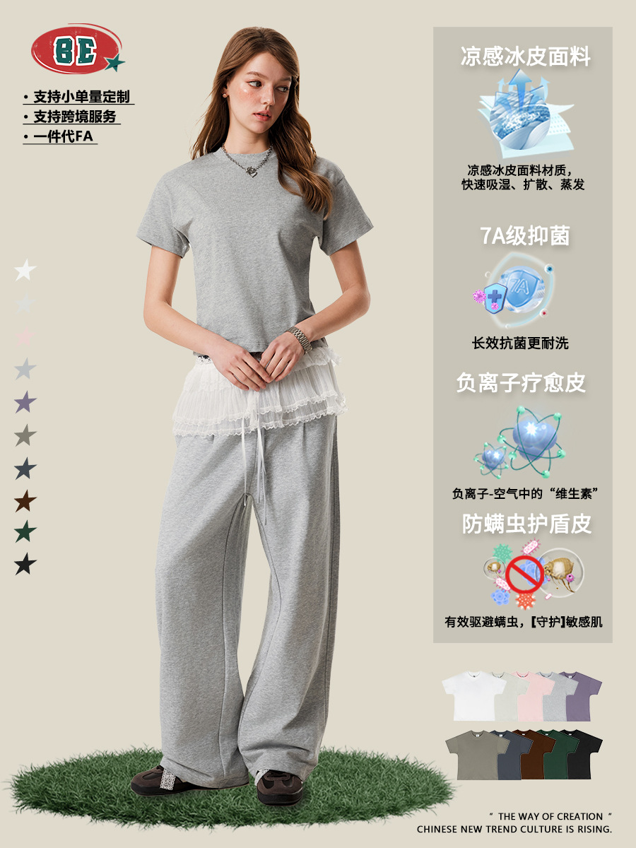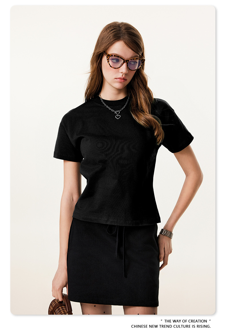 여성 의류 | 2025 여름 미국 안개 긴 스테이플 코튼 크루 넥 여성 t 캐주얼 스포츠 짧은 소매 어깨 슬리밍 티셔츠 여성