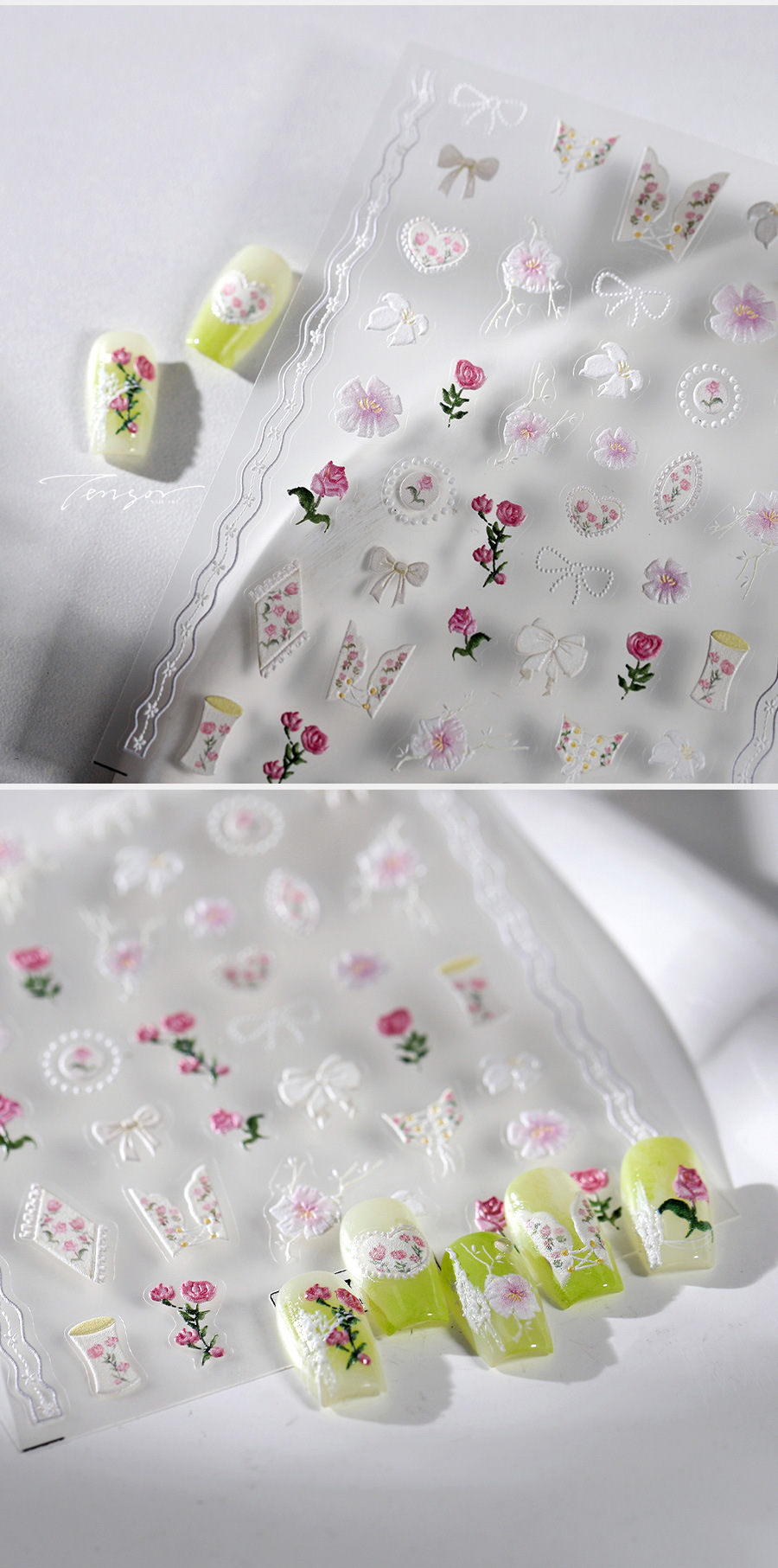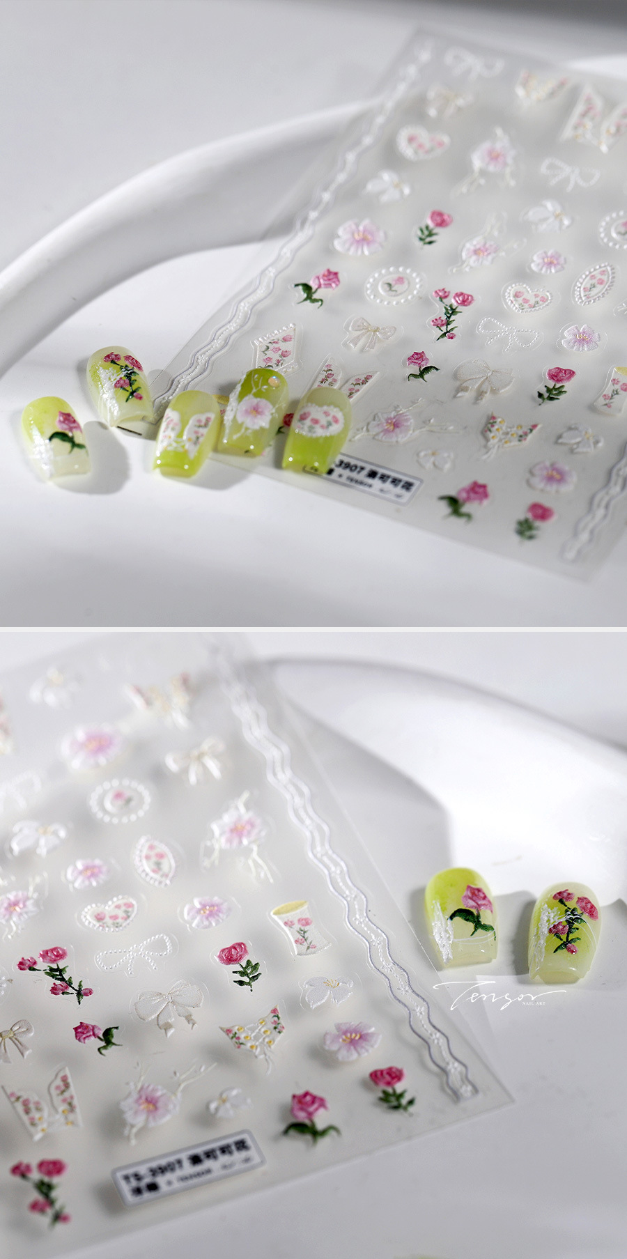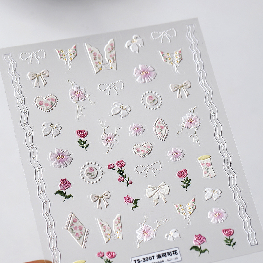 Magico Mar 철 새겨진 네일 스티커 프로 프로스트 얇은 투명 네일 스티커 TS-3907 로코코 꽃 새 양각스토어 가기