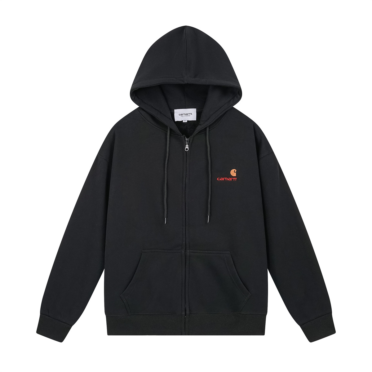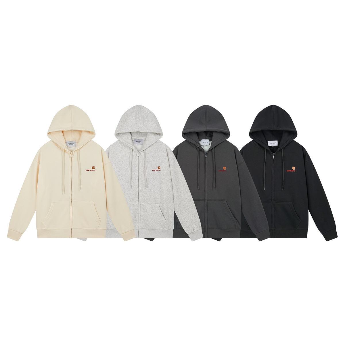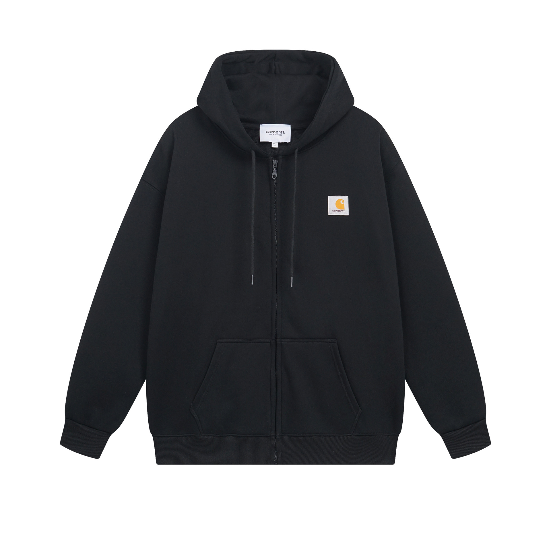 WIP 지퍼 가디건 플리스 후드티 로고 패턴 입체 프린팅 후드 카하트 크로스보더
