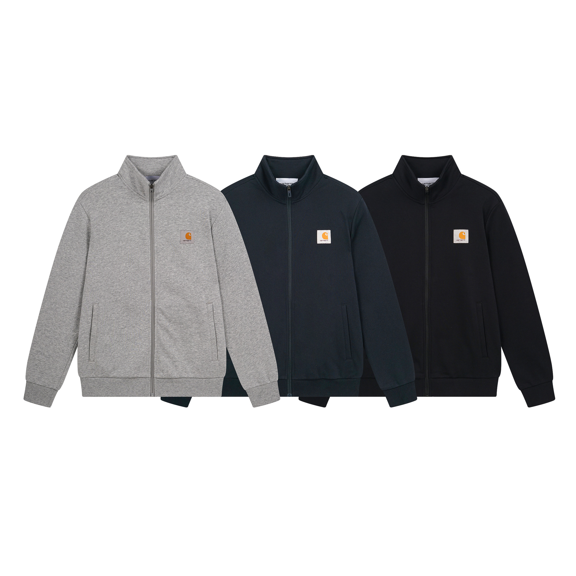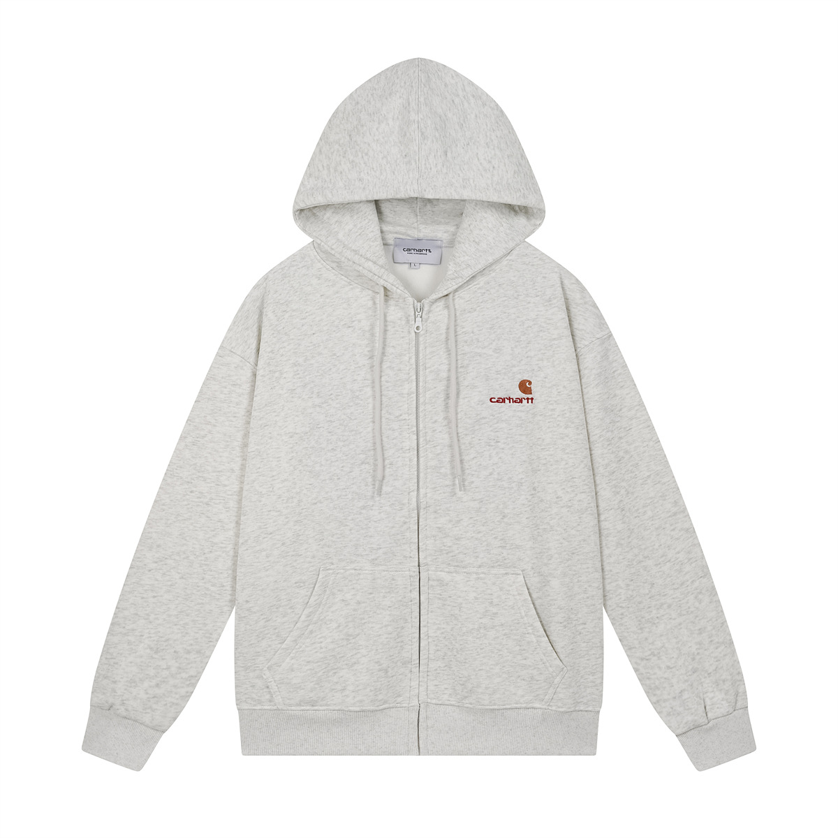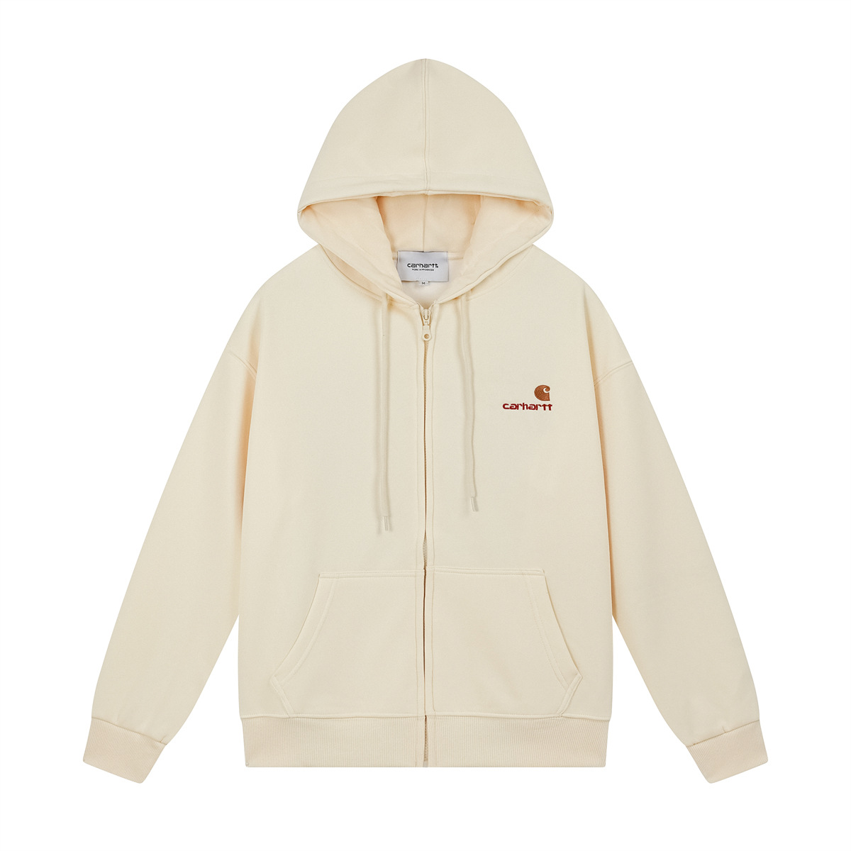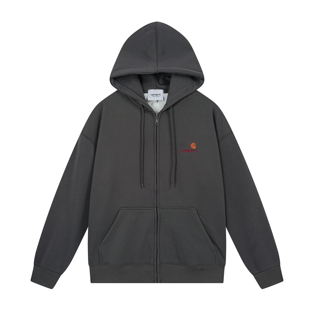 WIP 지퍼 가디건 플리스 후드티 로고 패턴 입체 프린팅 후드 카하트 크로스보더