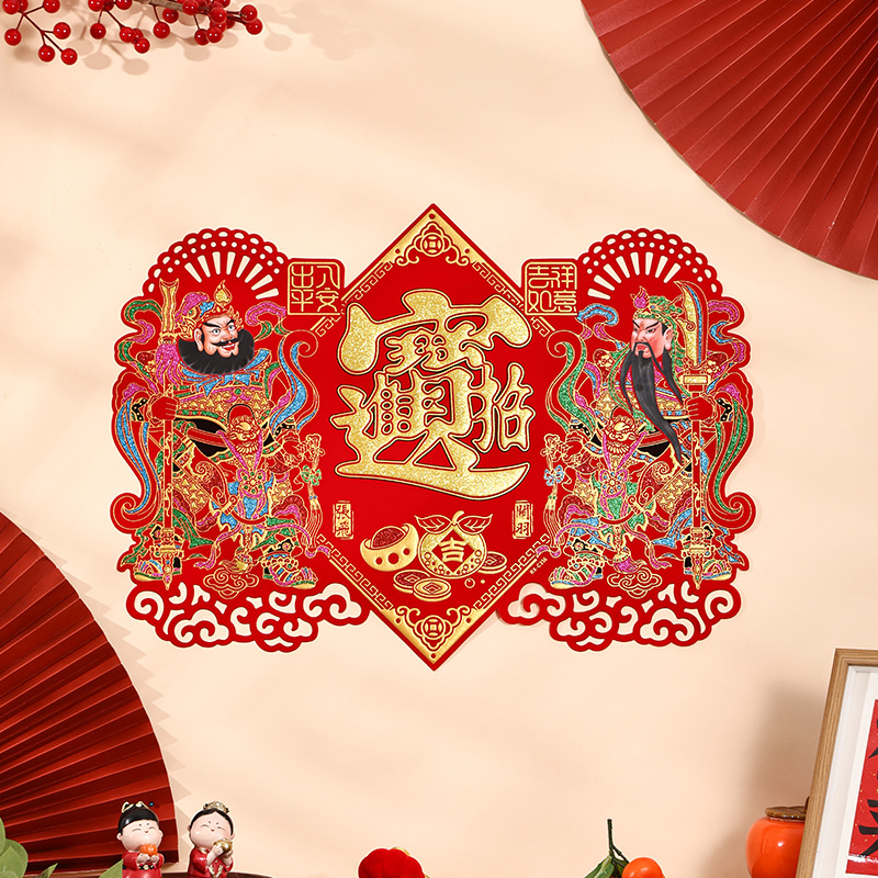 2025 새로운 행운의 단어 새해 플란넬 문 신 단일 문 보안 문 새 해 뱀 행운의 단어 문 스티커 장식의 새해 그림