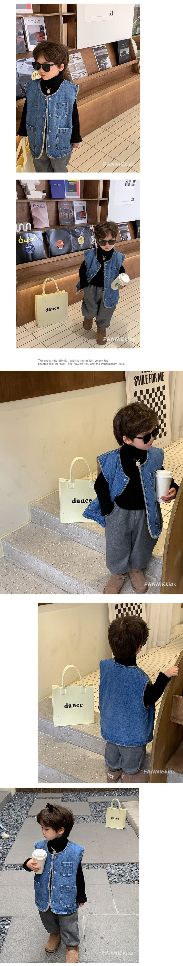 어린이 데님 조끼 겨울 새 2024 남자 어린이 유행 잘 생긴 재킷 한국식 기모 두꺼운 조끼스토어 가기