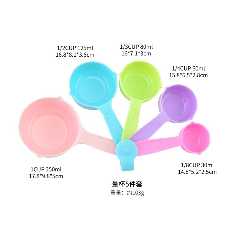 플라스틱 측정 컵 측정 숟가락 세트 측정 숟가락 커피 스푼 세트 베이킹 도구 5 개 세트 스케일 측정 컵
