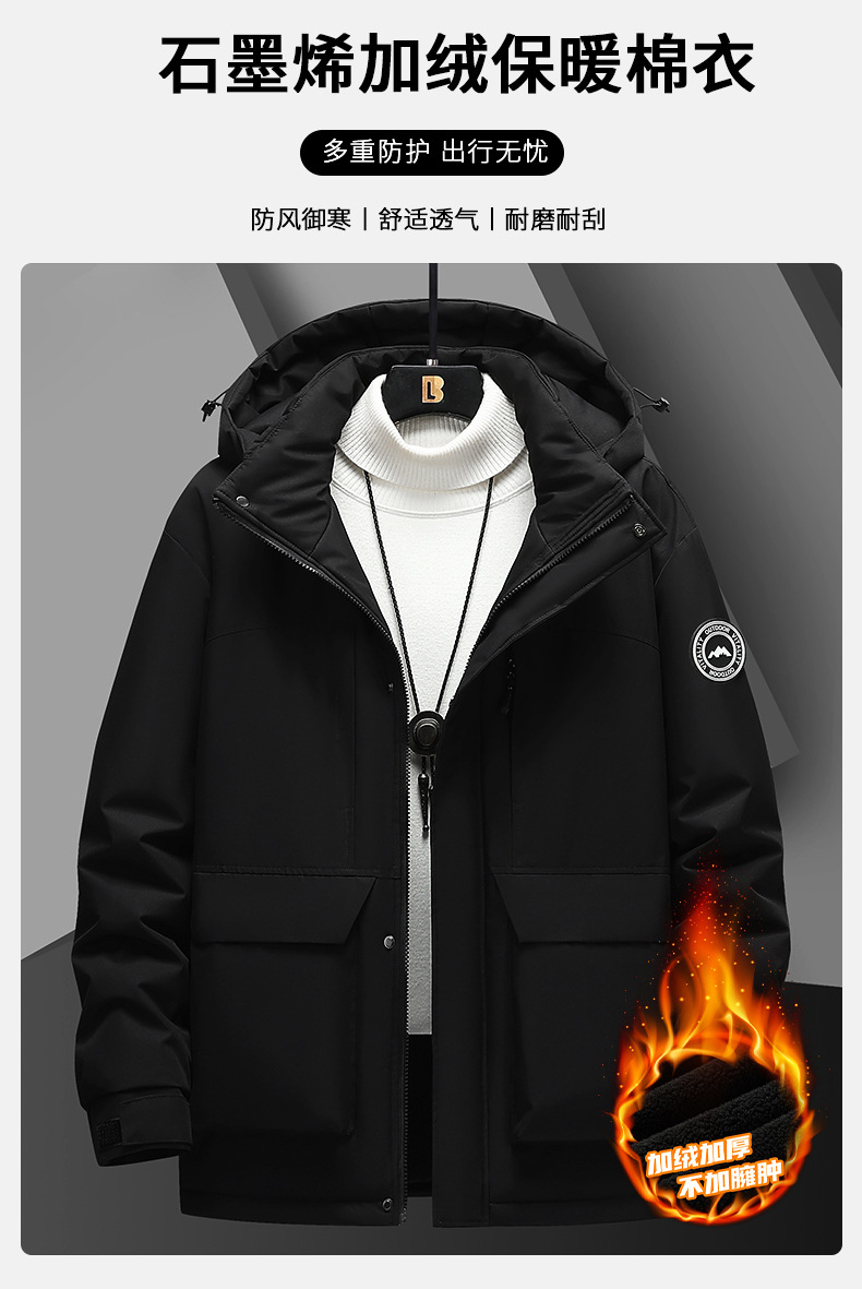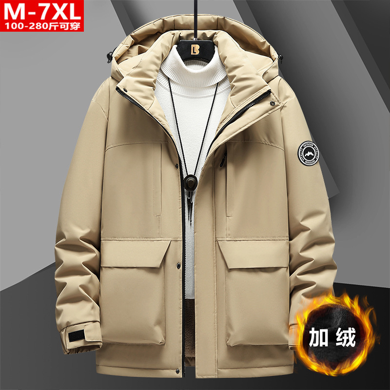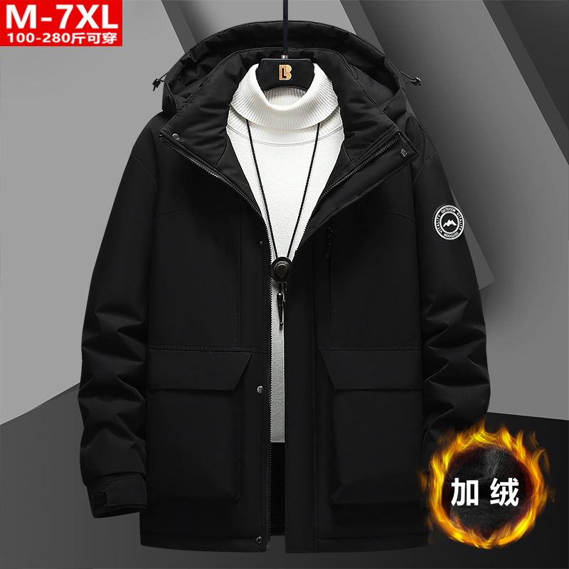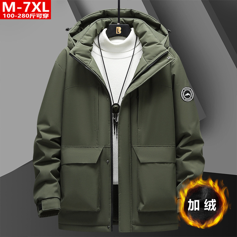 겨울 품질 트렌디 한 남성 패션 3 차원 패치 백 후드 코튼 의류 통통한 대형 지방 느슨한 내한성 따뜻한 재킷