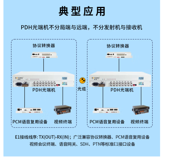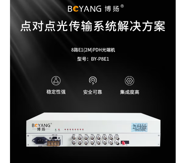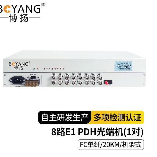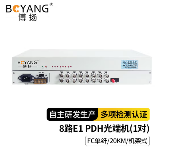 博扬(BOYANG)PDH光端机 8路E1 8路2M光端机 光纤收发器 FC单纤20公里 多业务光端机 机架式 双电源 BY-P8E1*1 合格证*1