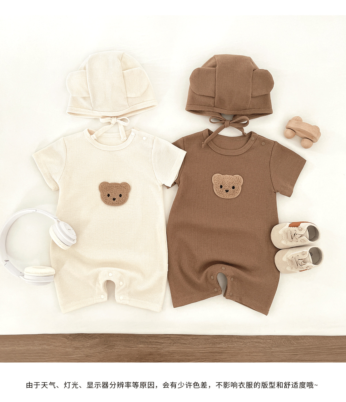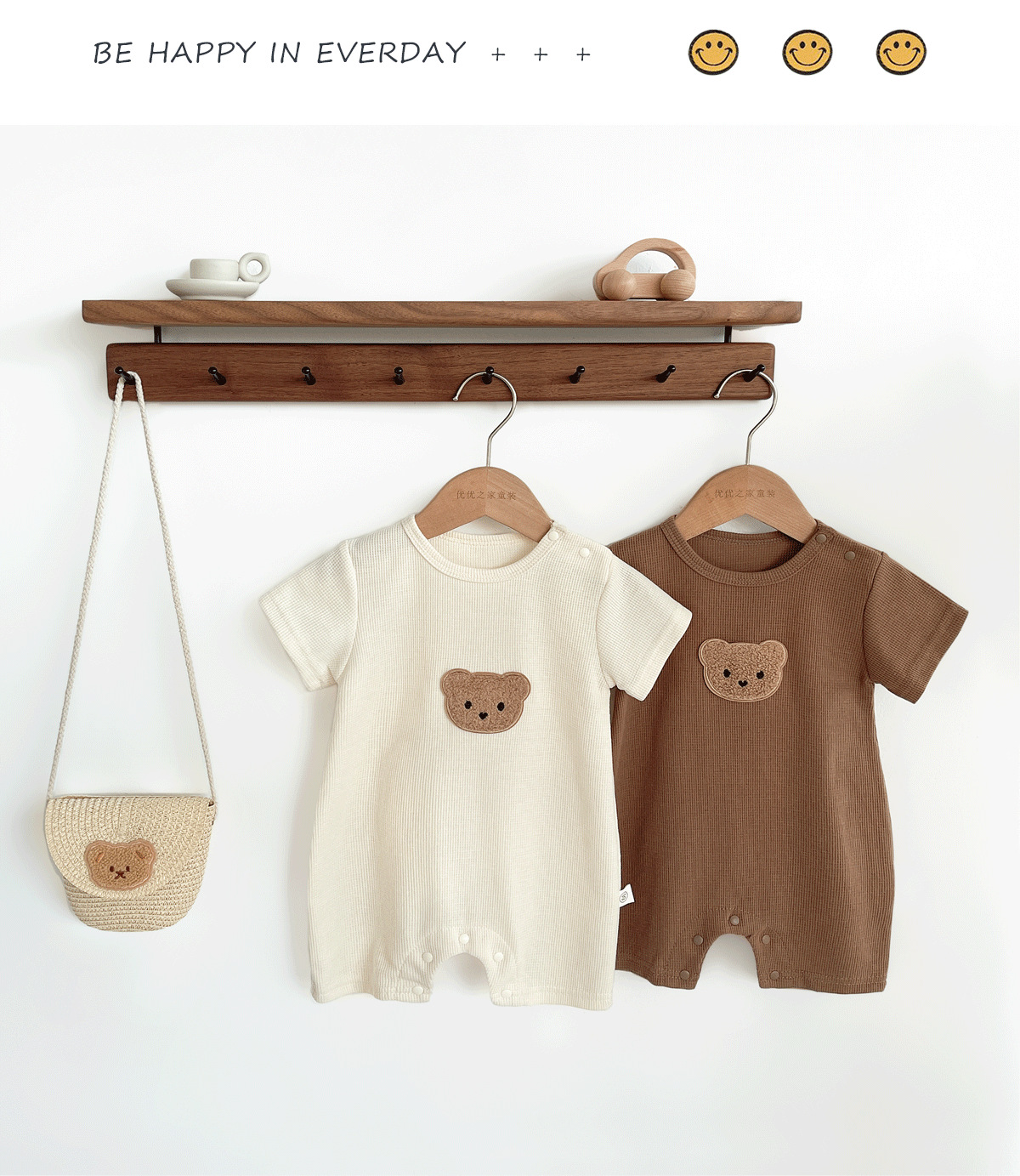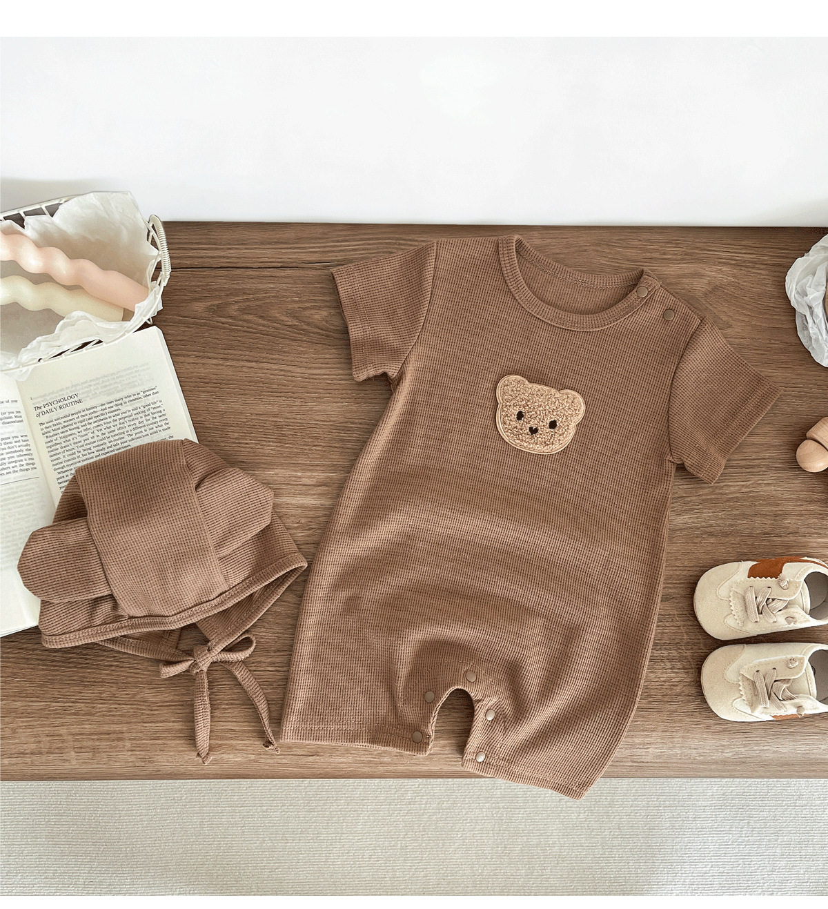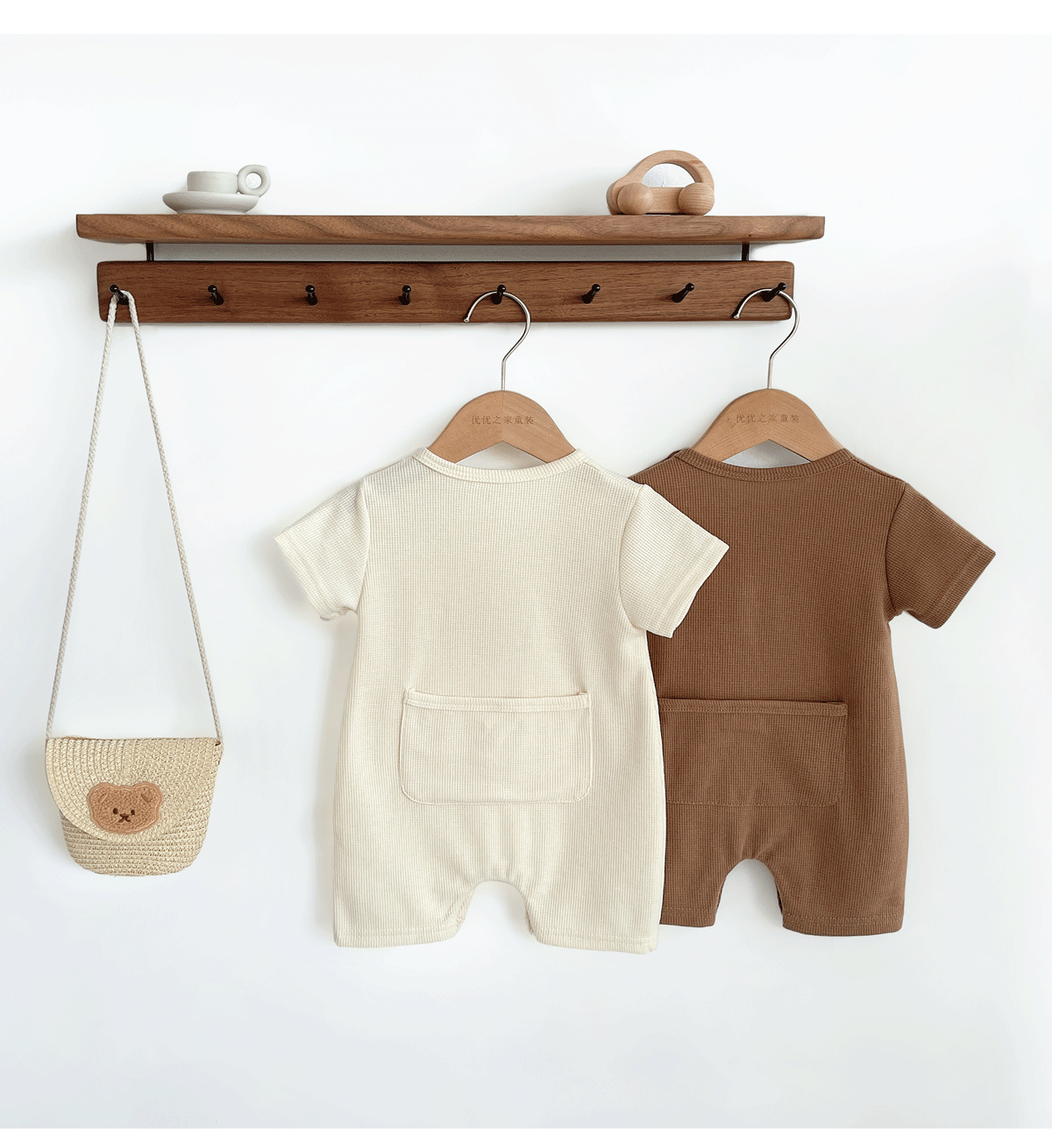어린이 의류 아기 점프 수트 여름 와플 큰 포켓 베어 아기 옷 아기 반팔 점프 수트