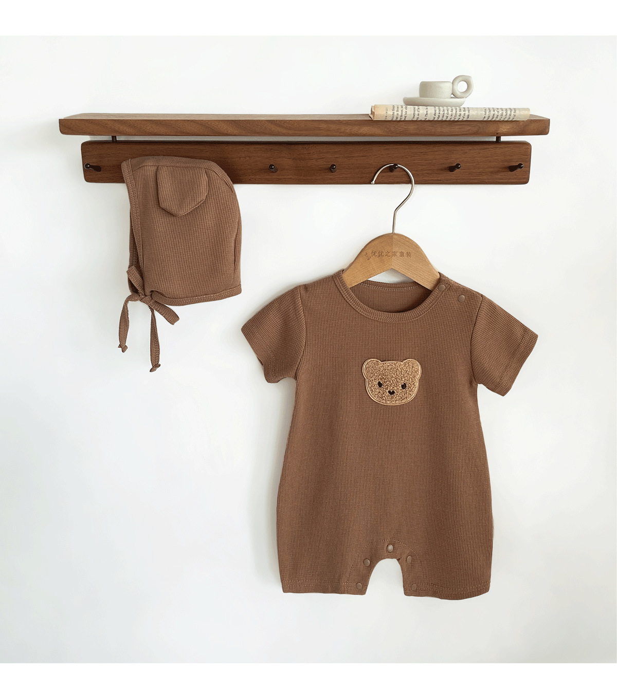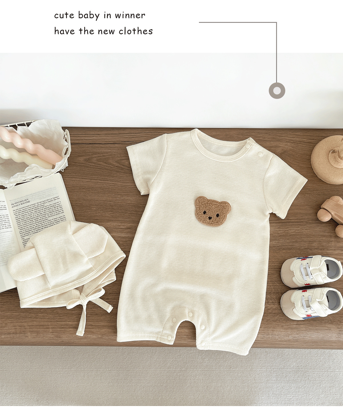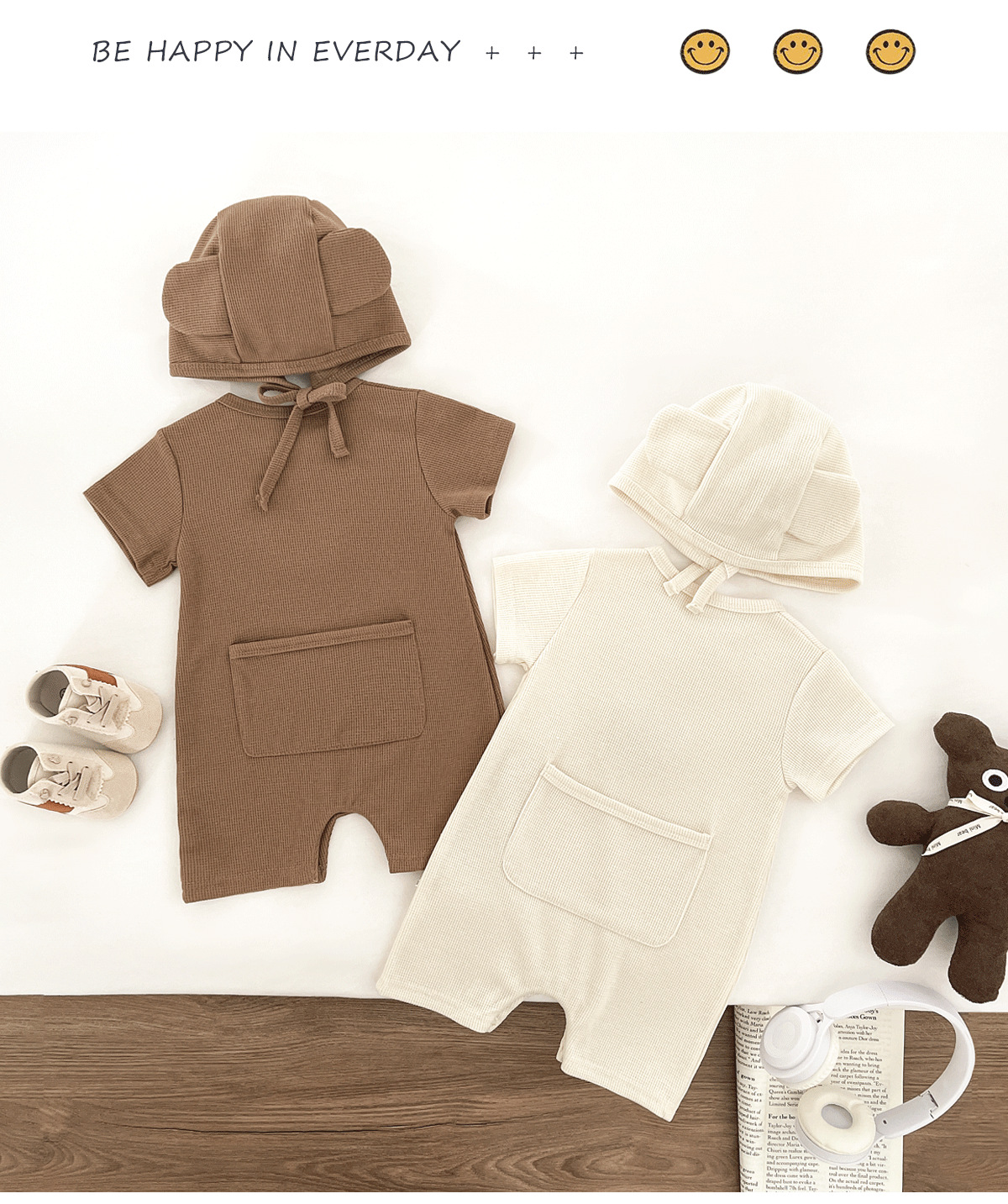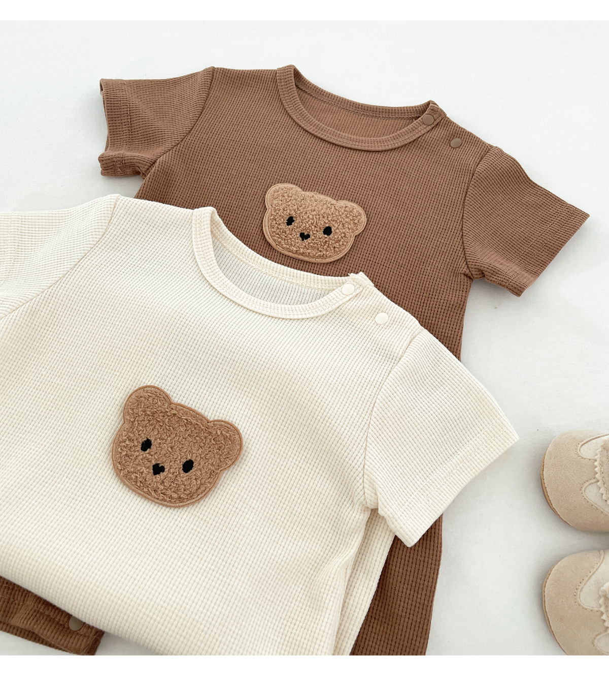 어린이 의류 아기 점프 수트 여름 와플 큰 포켓 베어 아기 옷 아기 반팔 점프 수트