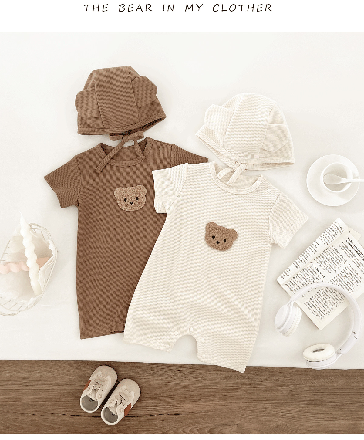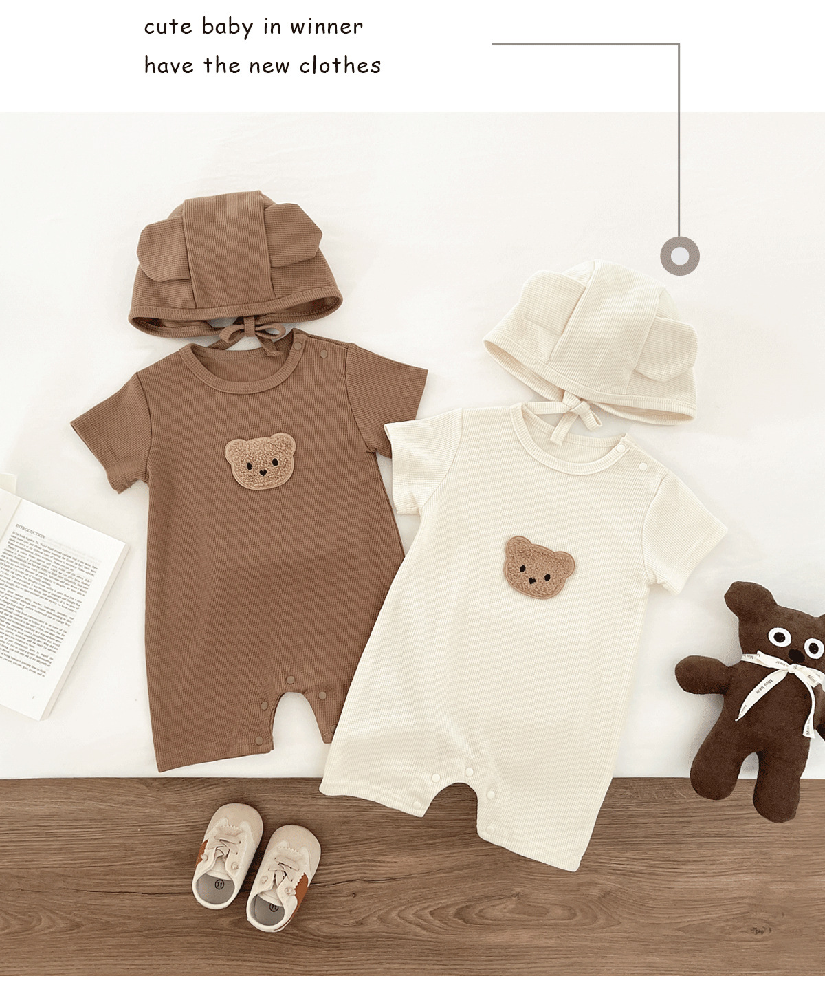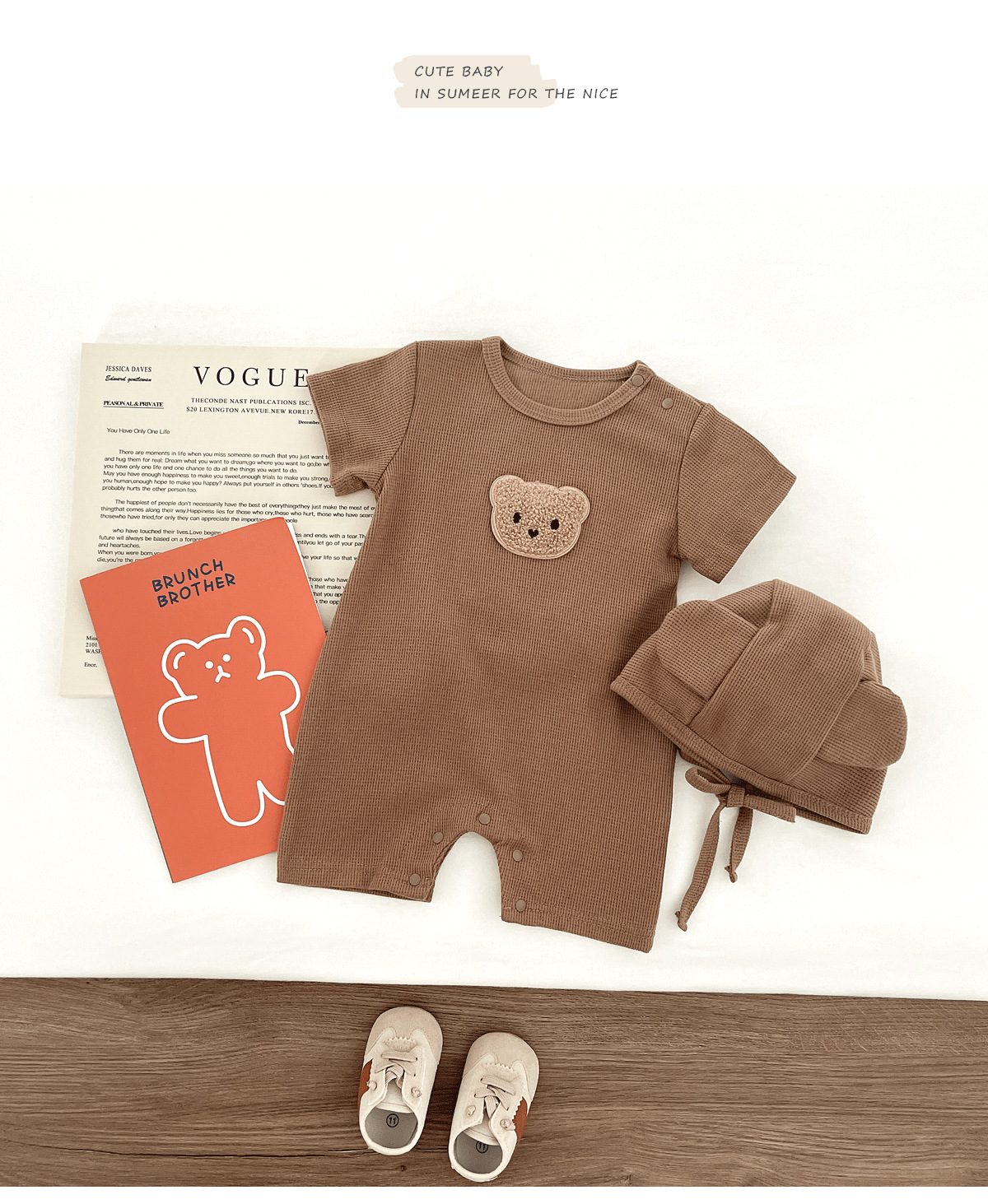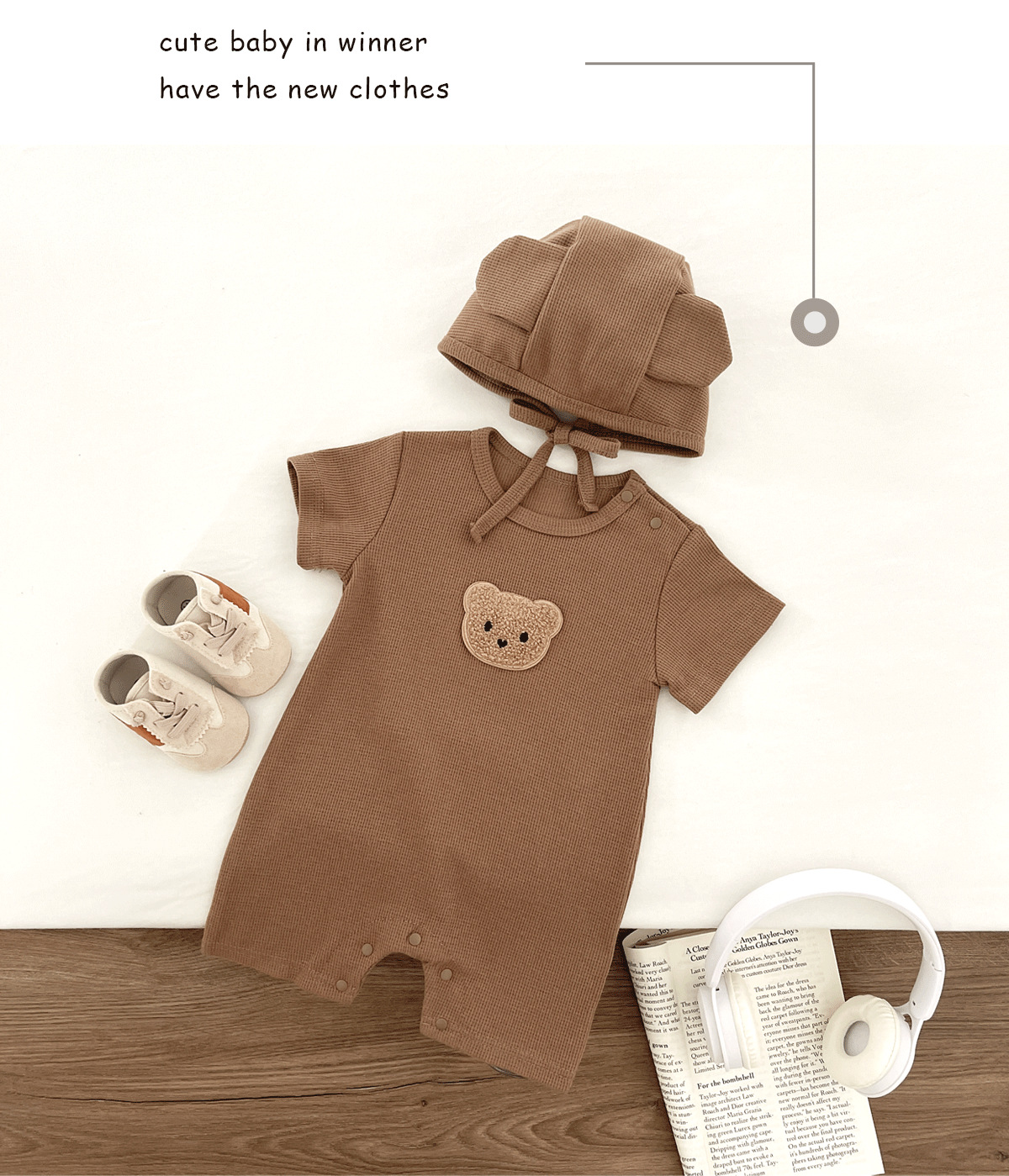 어린이 의류 아기 점프 수트 여름 와플 큰 포켓 베어 아기 옷 아기 반팔 점프 수트