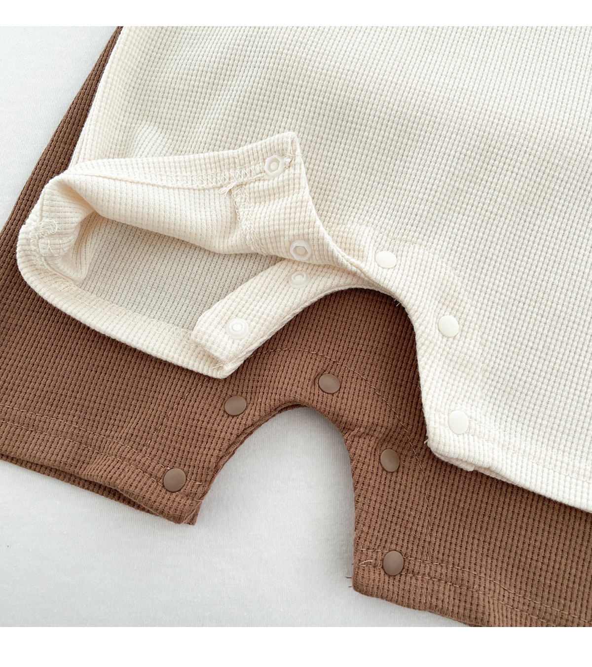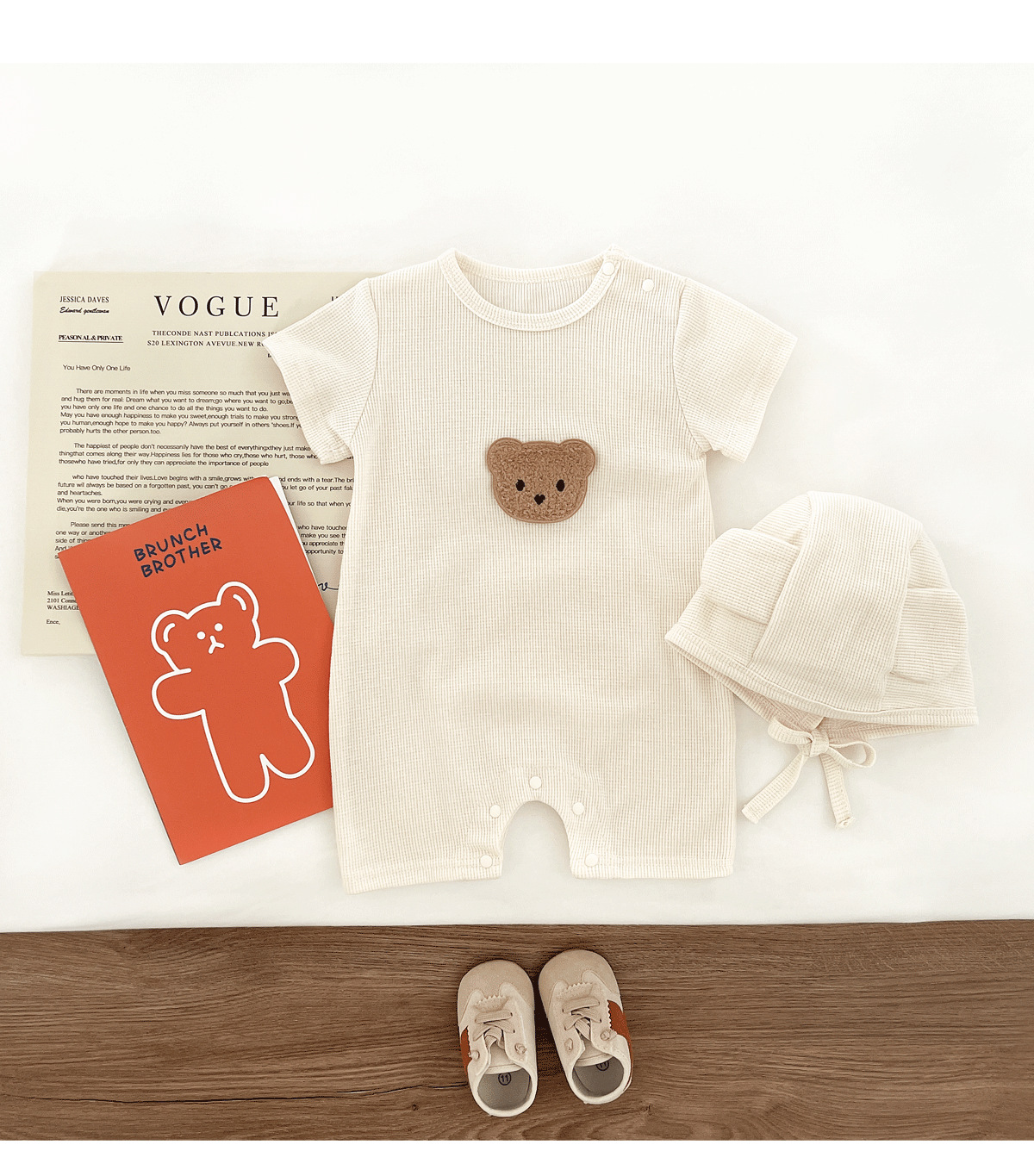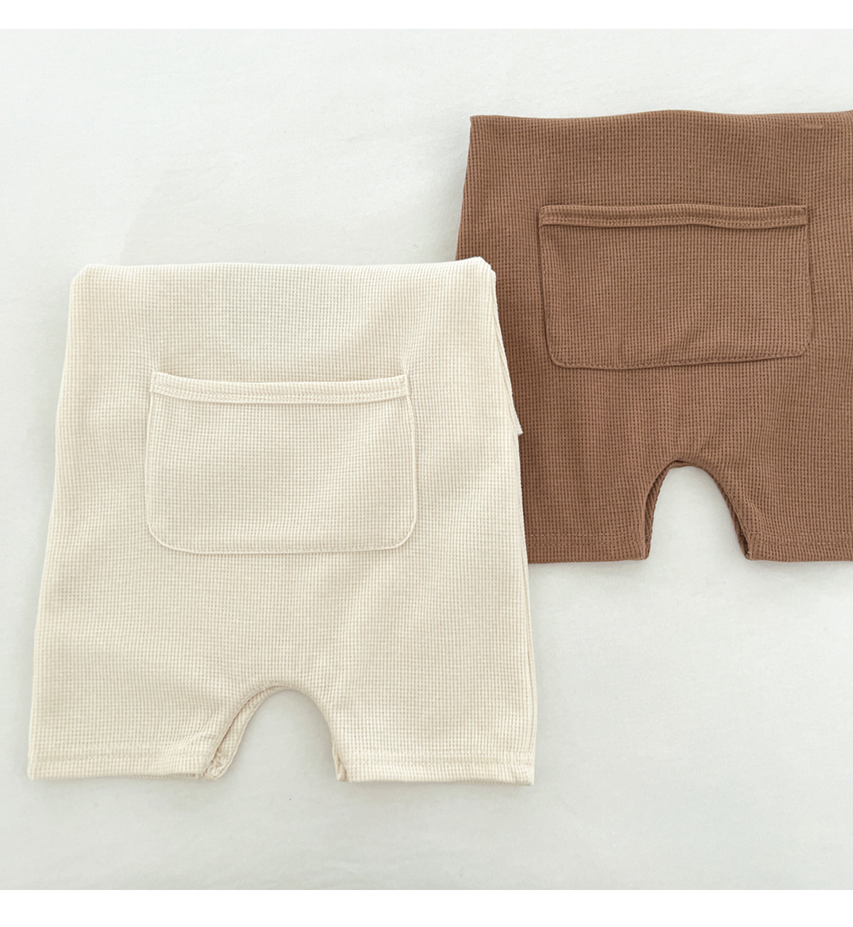 어린이 의류 아기 점프 수트 여름 와플 큰 포켓 베어 아기 옷 아기 반팔 점프 수트스토어 가기