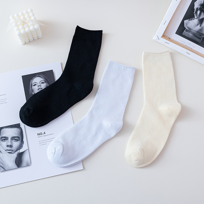 • 0361 솔리드 컬러 세로 스트립 파일 양말