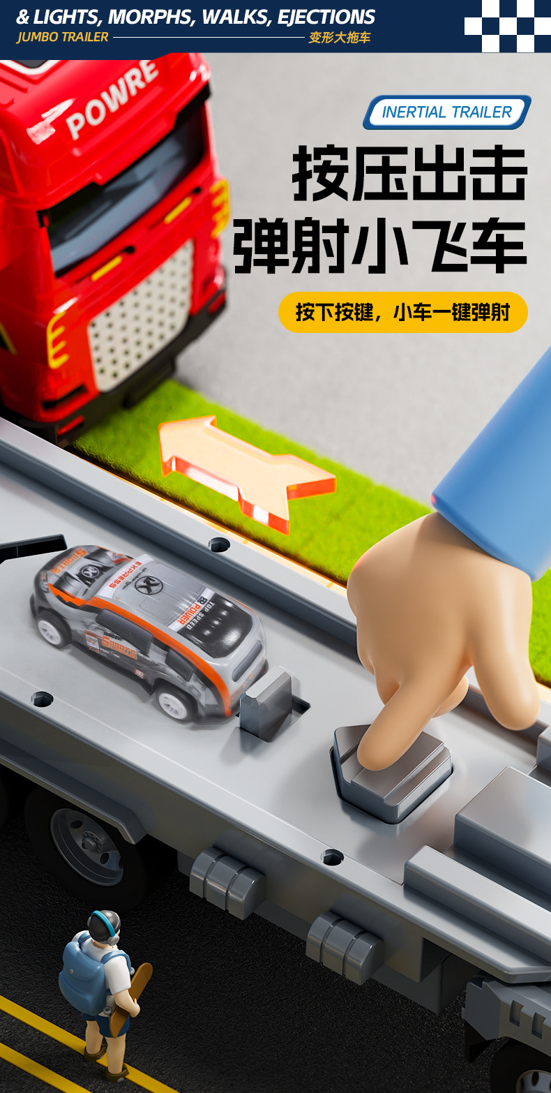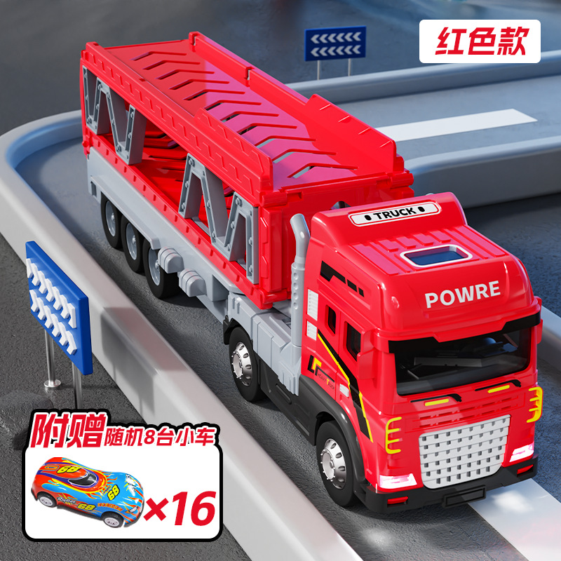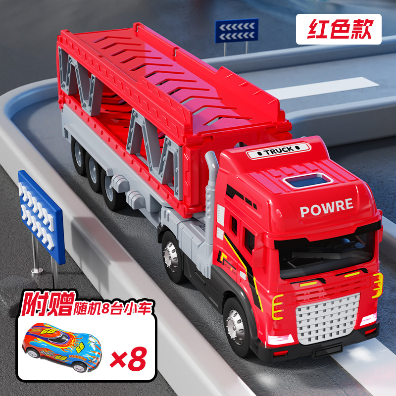 • 빨간색 [소리와 빛/이중층] 변형 대형 트레일러 + 자동차 8대 전자상거래 상자