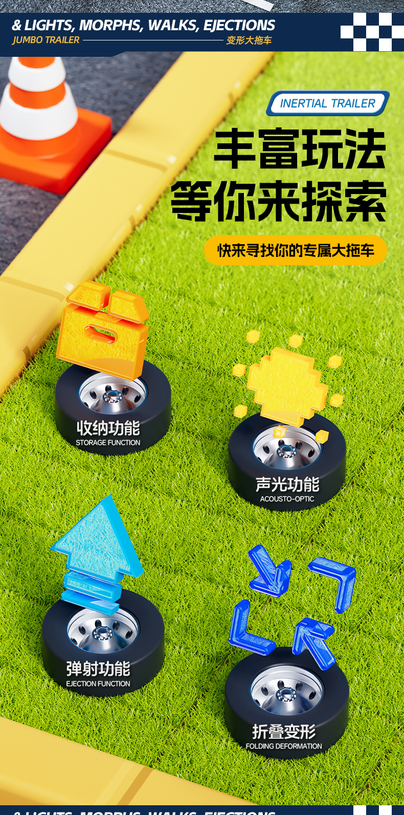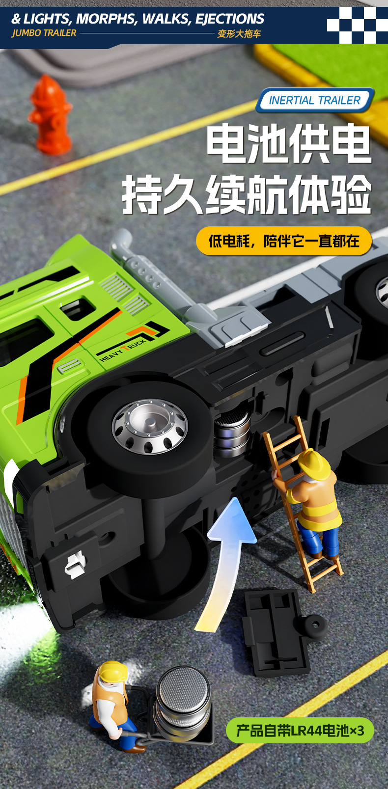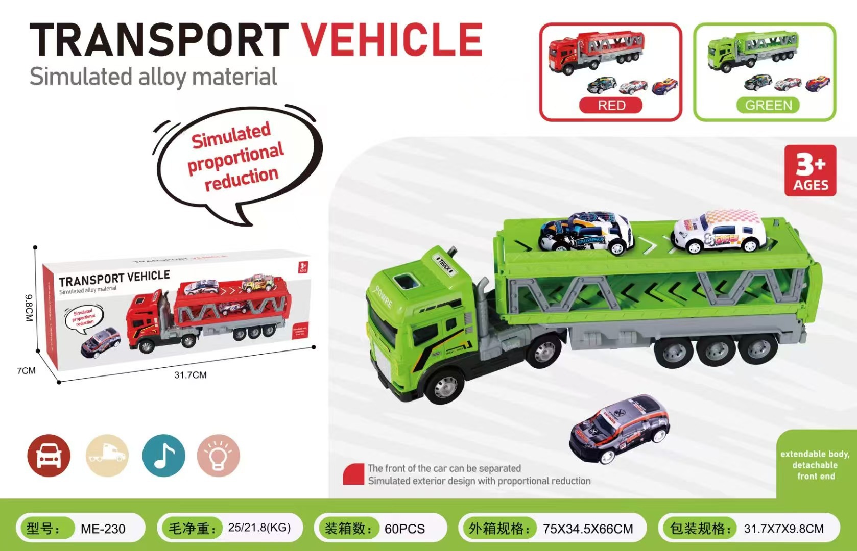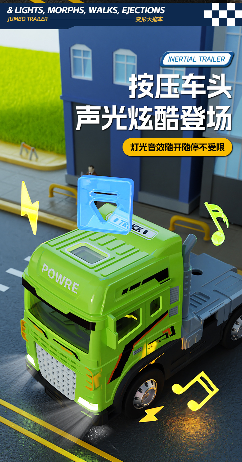 • 녹색 [소리와 빛/이중층] 변형 대형 트레일러 + 16대 전자상거래 박스