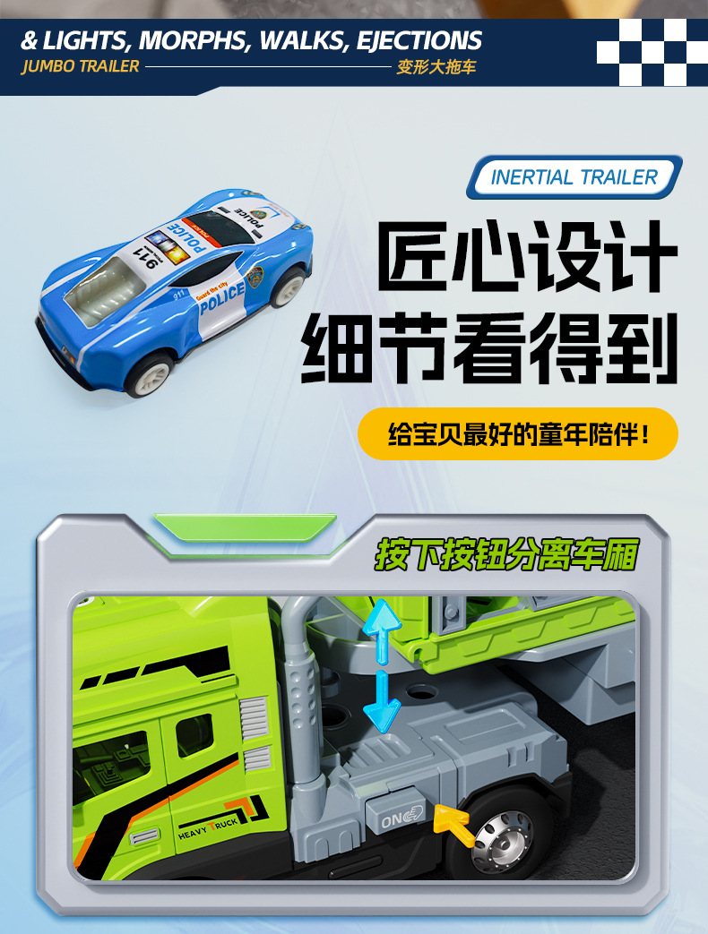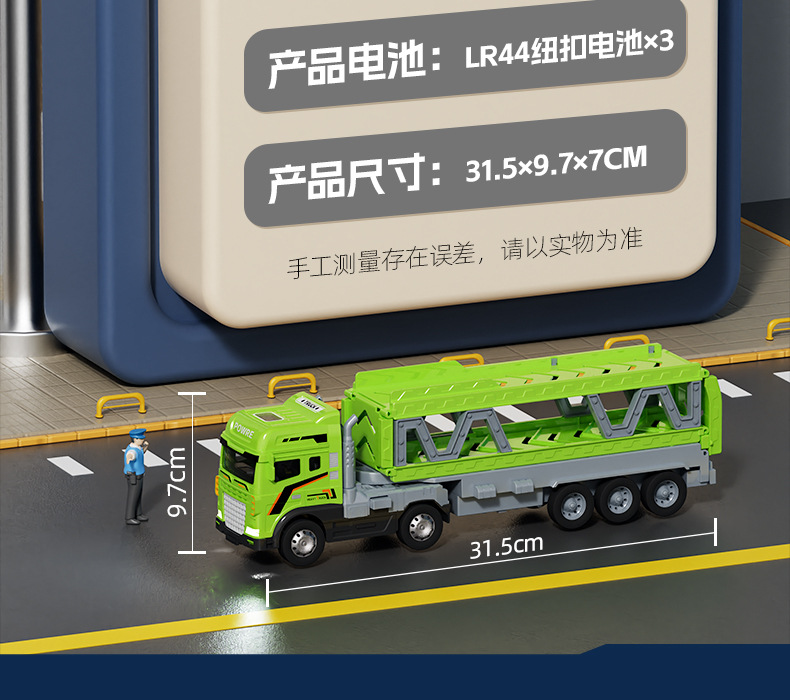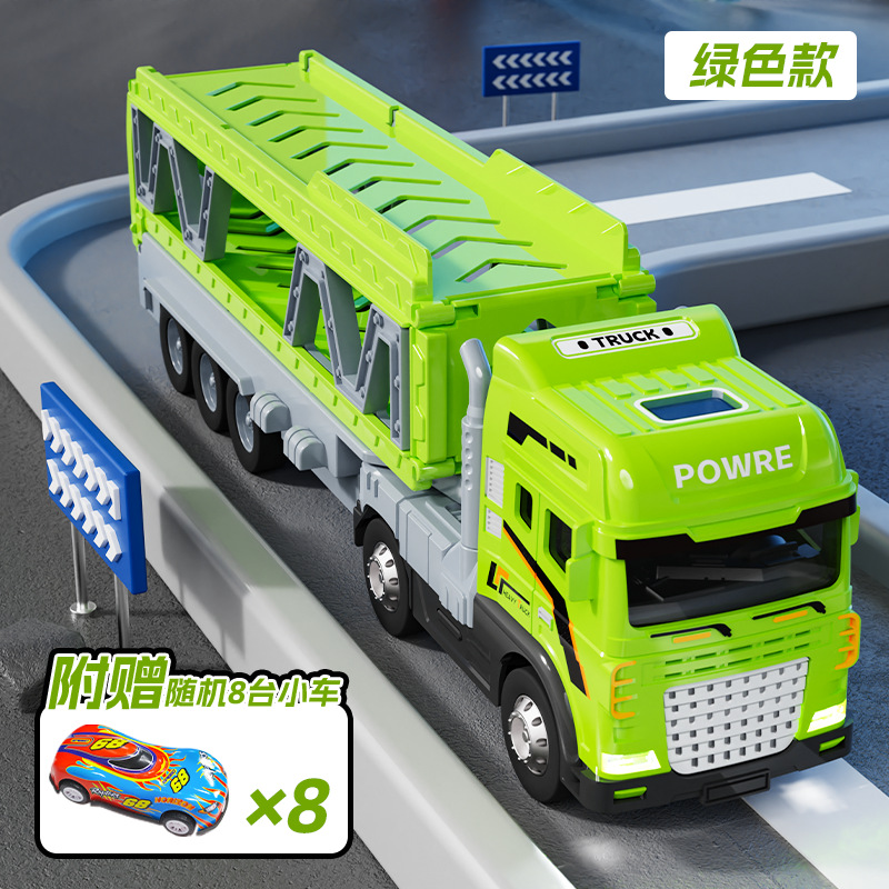 • 녹색 [소리와 빛/이중층] 변형 대형 트레일러 + 자동차 8대 전자상거래 상자