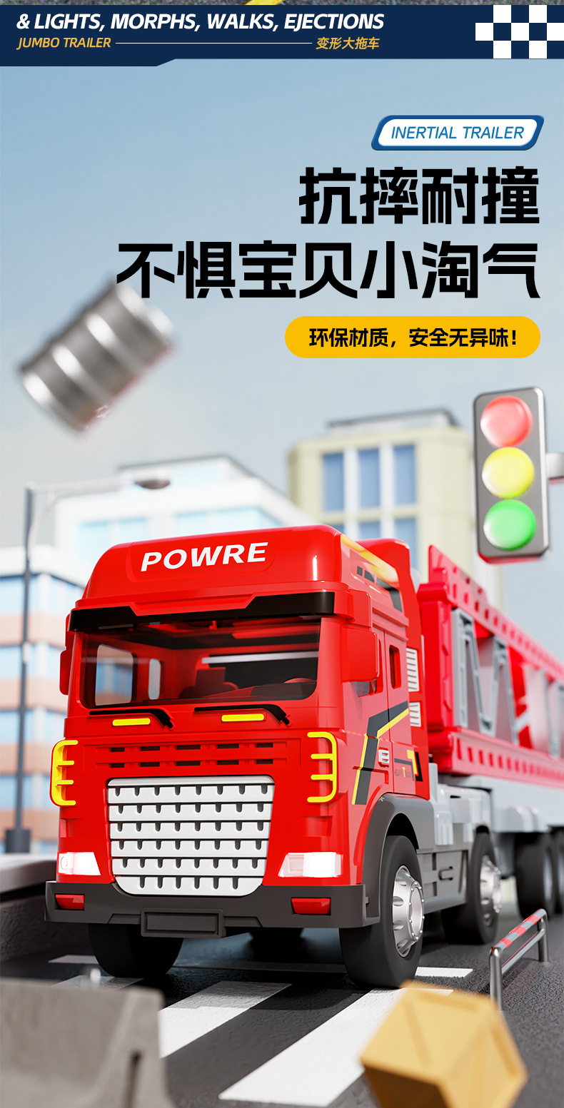 대형 관성 수송기 2 층 트레일러 관성 공학 차량 소년의 소리와 가벼운 차량 배출 장난감 자동차 어린이 장난감