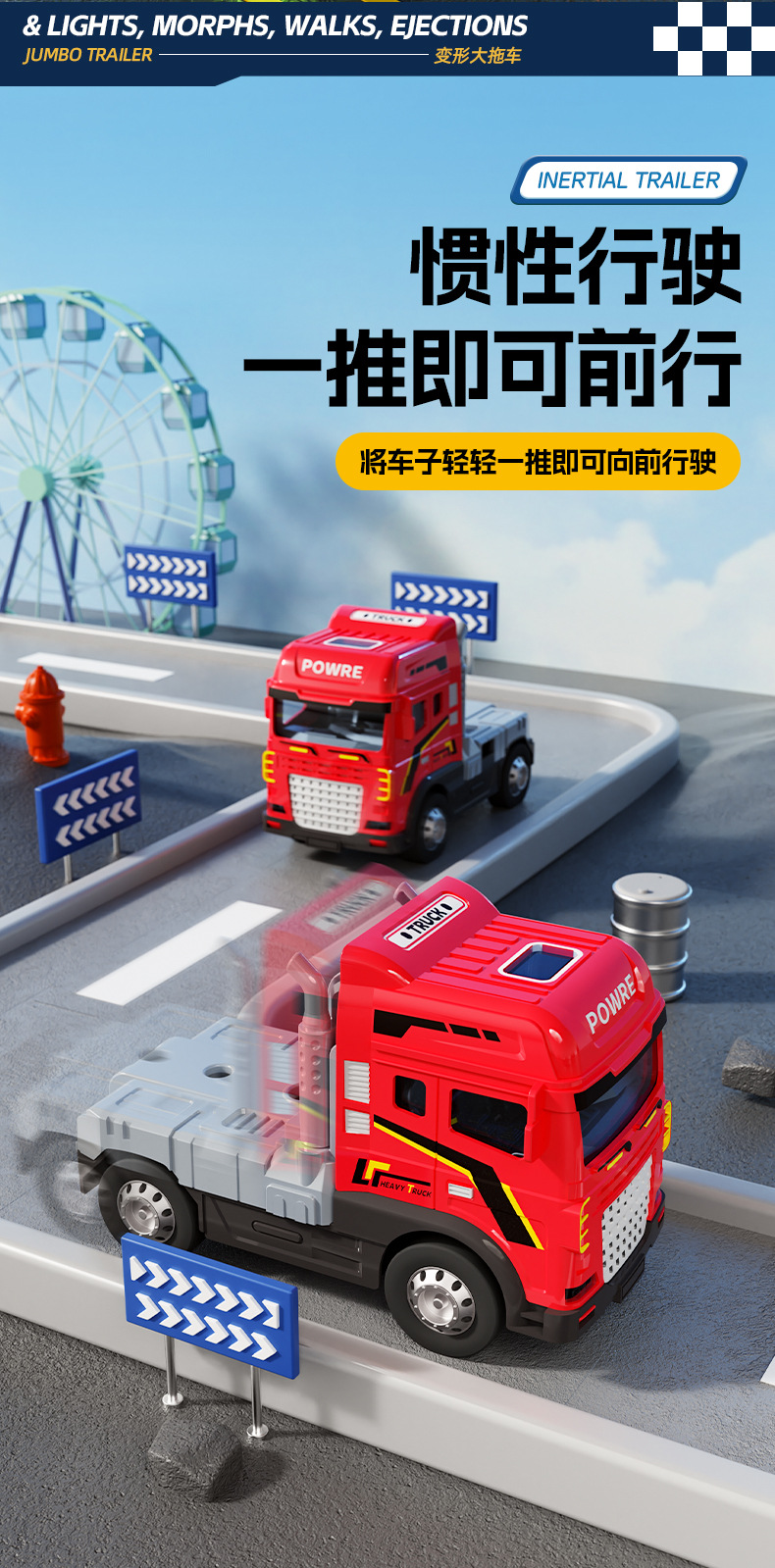 • 빨간색 [소리와 빛/이중층] 변형 대형 트레일러 + 16대 전자상거래 박스