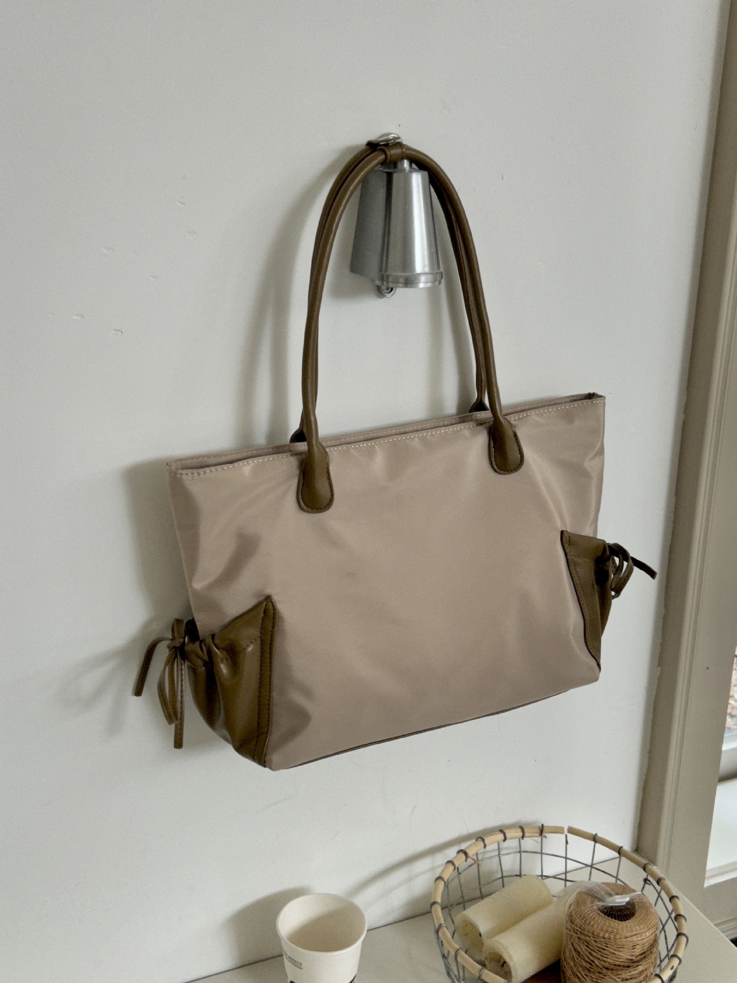 한국 대용량 나일론 직물 유행 속옷 가방 대학 학생 클래스 통근 솔리드 컬러 숄더 백스토어 가기