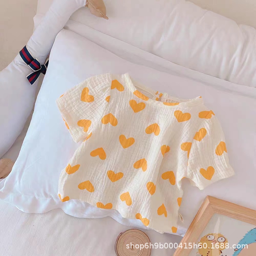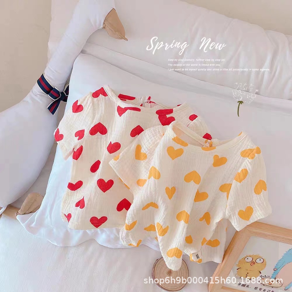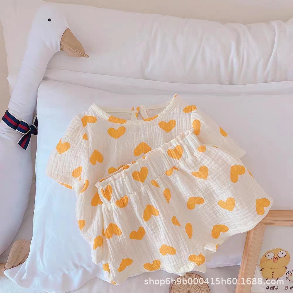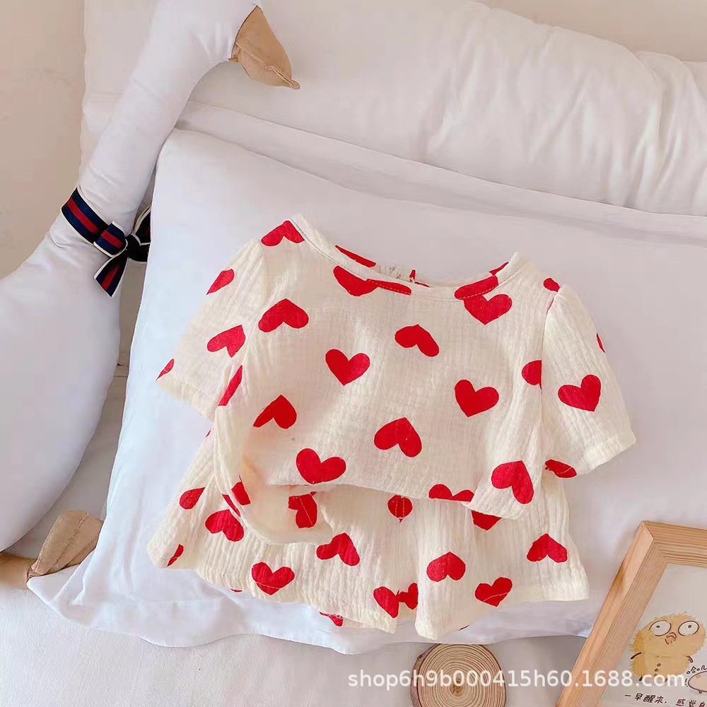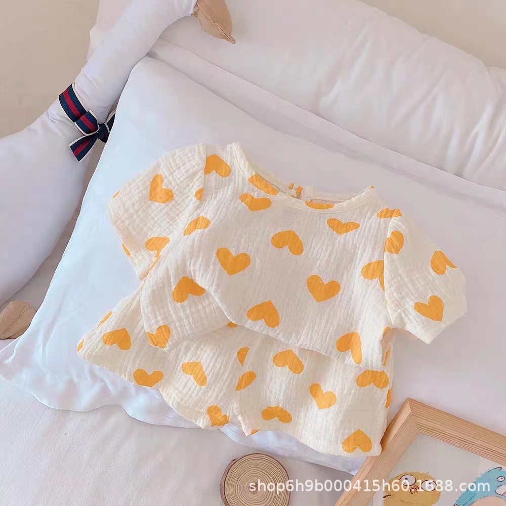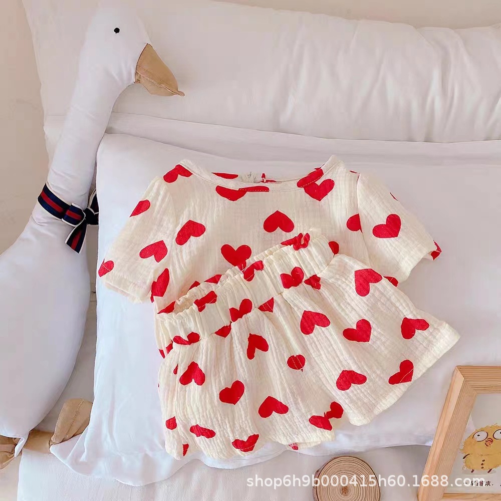 소녀 여름 세트 아기 사랑 인터넷을위한 반팔 투피스 세트-유명한 유행 면 원사 얇은 에어컨 세트 투피스 세트