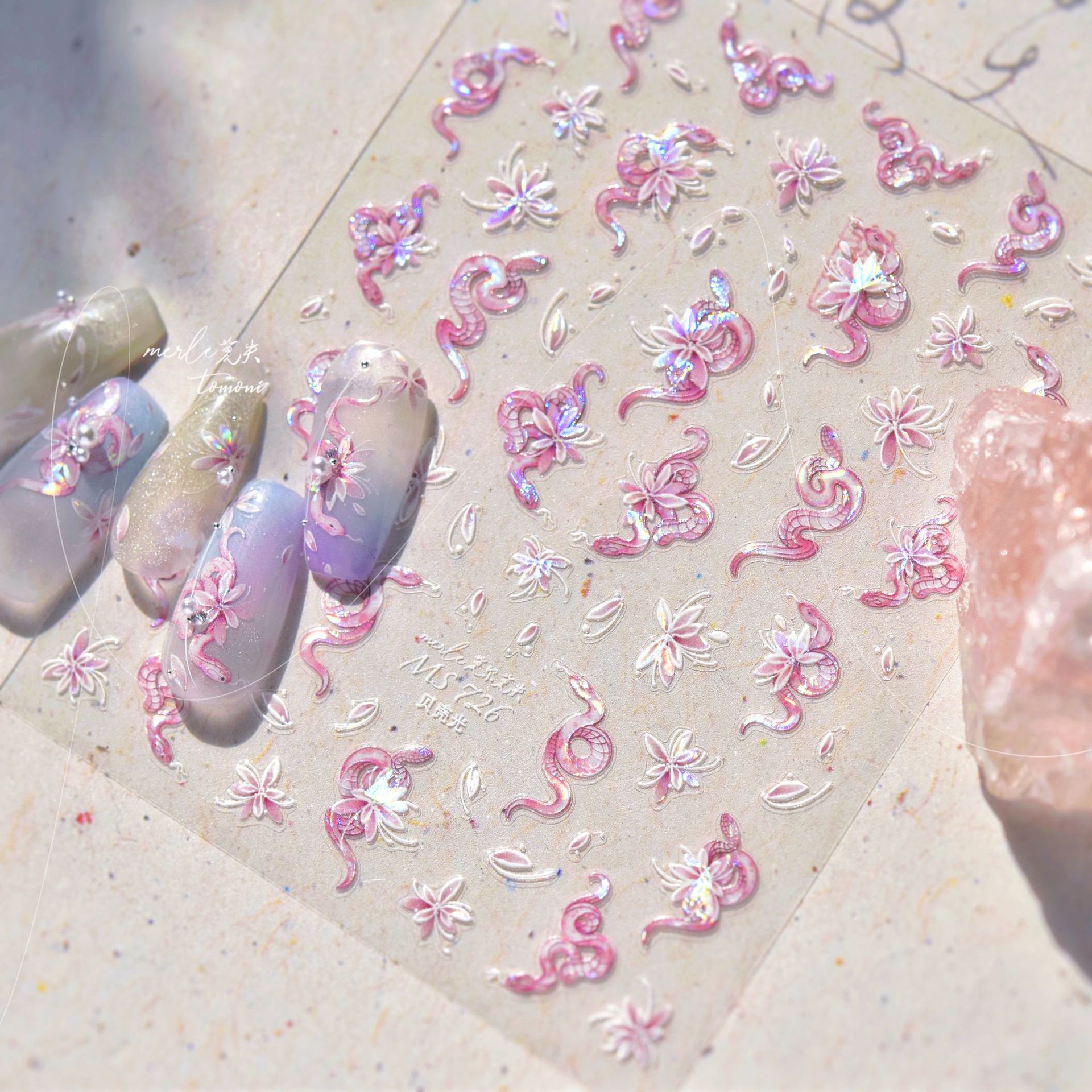 Tomoni Shell 라이트 네일 아트 스티커는 협력 폭발 문구 휴대 전화 네일 스티커 꽃과 뱀 스티커를 잃지 않습니다.