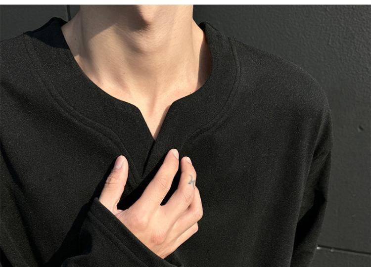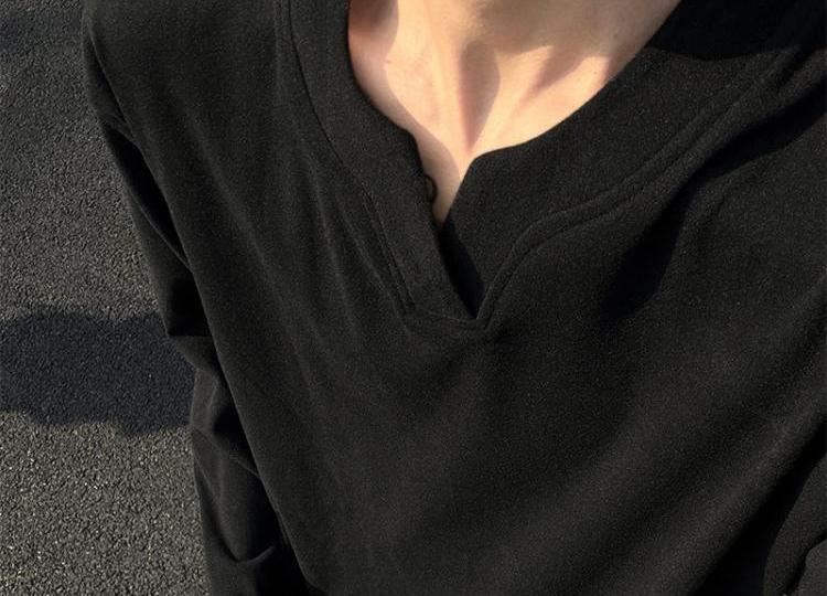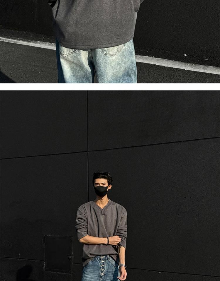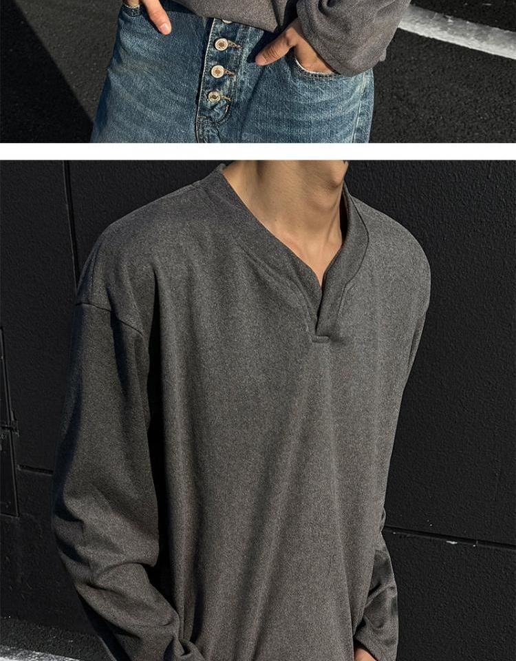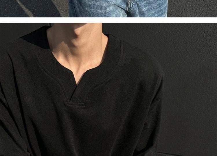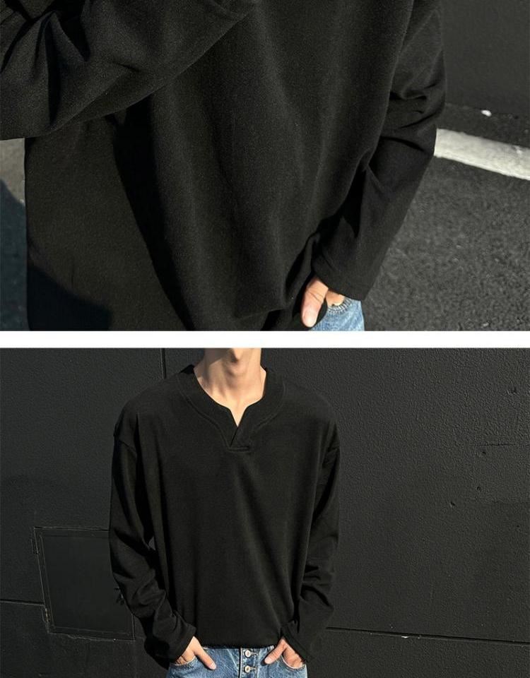 독일 벨벳 블랙 긴팔 티셔츠 남성용 가을 및 겨울 미국 무거운 V 넥 스웨터 클렌핏 Hoodless 내베이스 셔츠스토어 가기